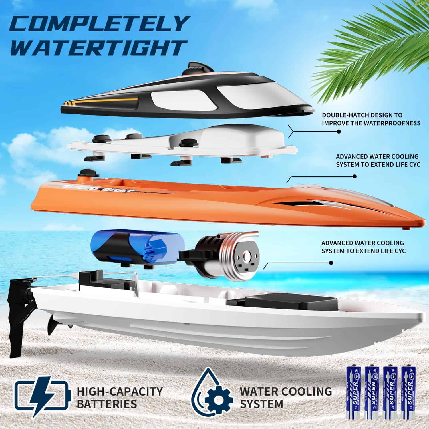 Nuestros barcos RC también están doblemente impermeabilizados, lo que te permite disfrutar de un juego sin preocupaciones en diversas condiciones de agua. Ya sea en el lago, la playa o la piscina, nuestros barcos resistirán los elementos y proporcionarán entretenimiento sin fin.