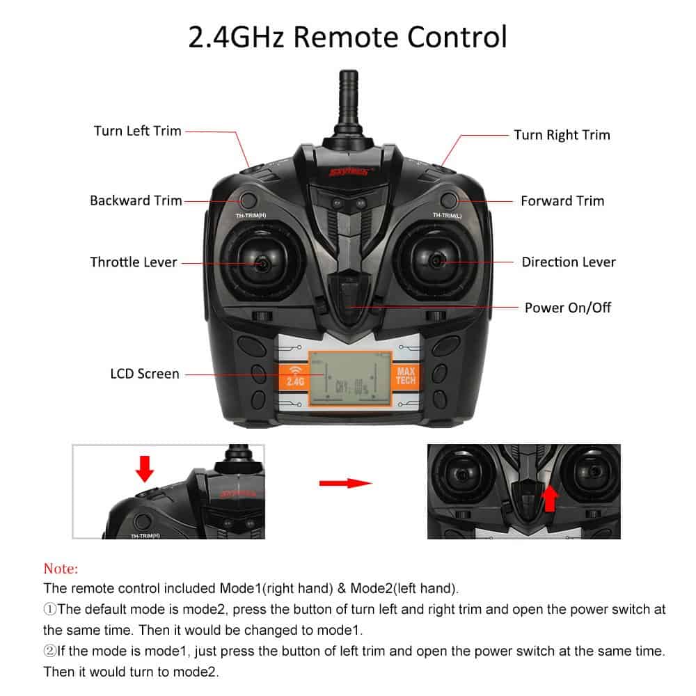 Modo del controlador: Modo2 & Modo1 (acelerador de mano izquierda y derecha)