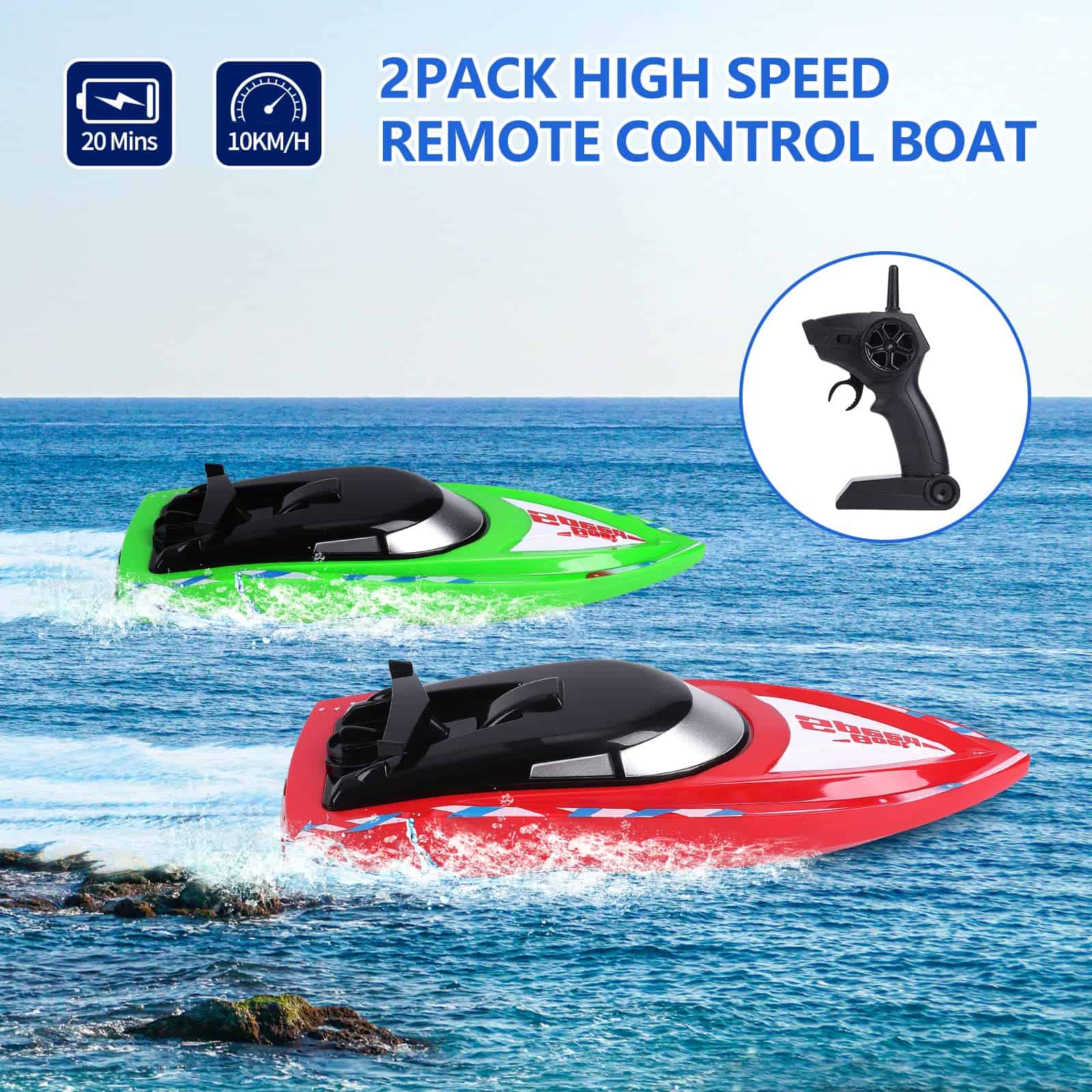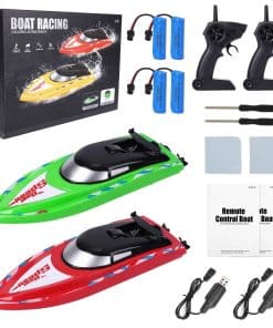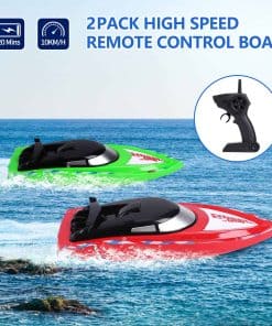 Este pack de 2 barcos de control remoto de FunsLane es ideal para jugar en piscinas y lagos, tanto para niños como para adultos. Con una velocidad de 10 km/h y una frecuencia de 2.4 GHz, estos barcos son fáciles de controlar gracias a su control remoto inteligente. La distancia de control de 40-50m permite disfrutar de carreras emocionantes con amigos.