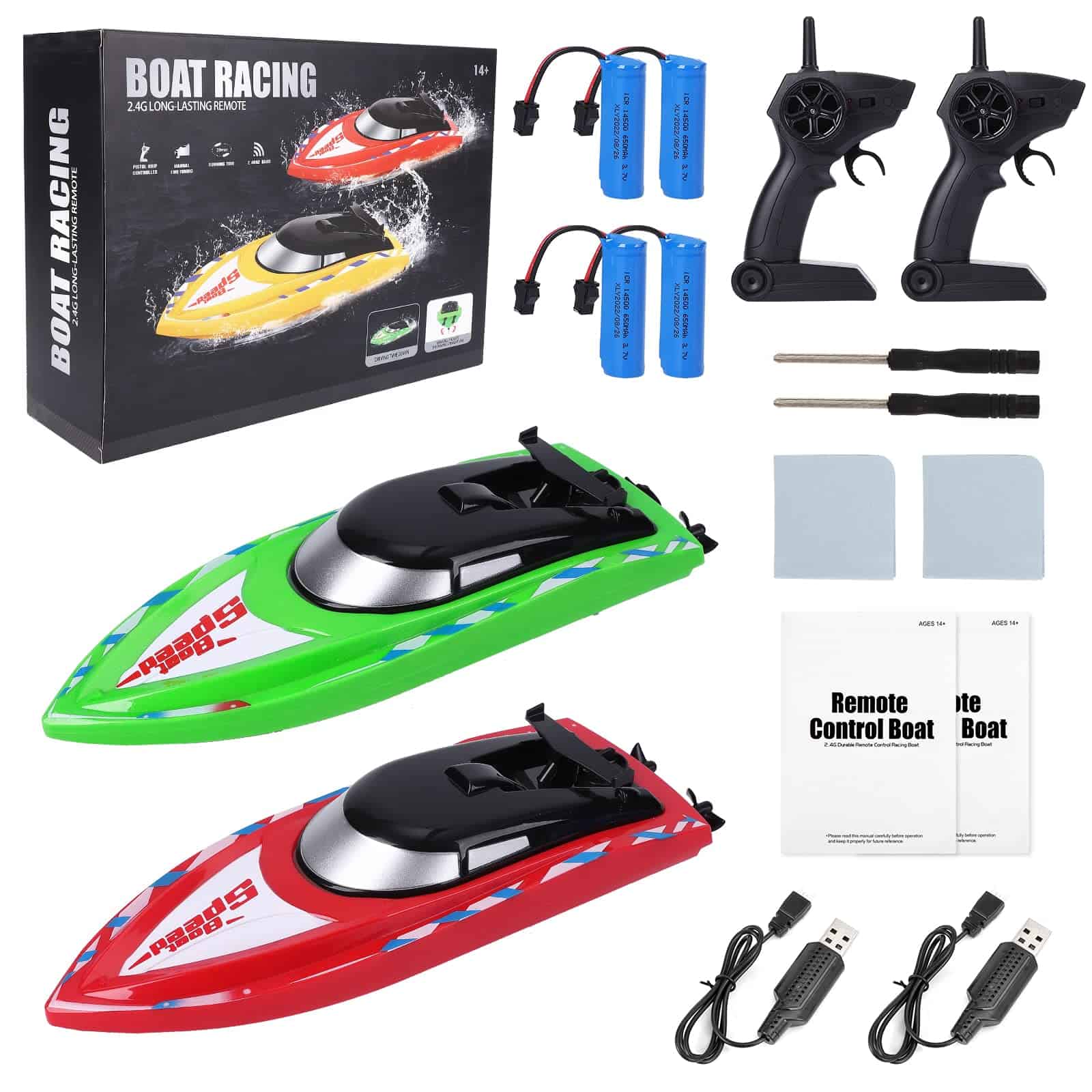 Para iniciar el barco, simplemente encienda el interruptor del control remoto y empareje la señal para permitir el control. El pack de 2 barcos es el regalo perfecto para cumpleaños y Navidad, permitiendo a los niños disfrutar de emocionantes carreras. No recomendado para uso en agua salada. En caso de problemas, nuestro equipo de soporte está disponible las 24 horas para ayudar.