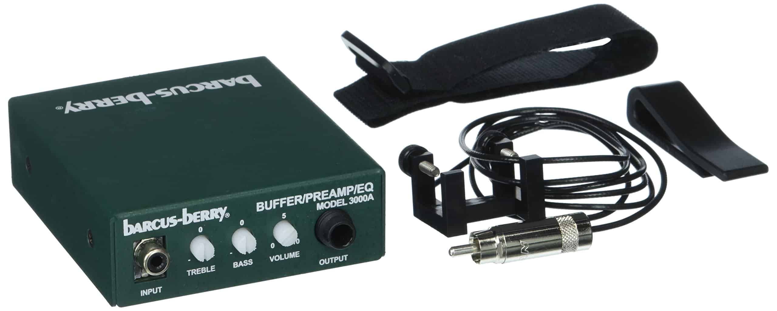 Diseñado para micrófono el bajo acústico sin instalar permanentemente un transductor. Se sujeta fácilmente al puente del bajo y se quita fácilmente – no se necesita perforar ni herramientas. Este transductor es un favorito por su capacidad para capturar el rango musical completo del bajo – desde tonos delicados hasta graves profundos. Incluye el preamplificador 3000A. Materiales y componentes de calidad incluidos: Micrófono/Transductor: transductor piezo estilo abrazadera para bajo, Preamplificador: Buffer piezo 3000A, Preamplificador con EQ, Un juego de pies de goma (4 cada uno), Clip de cinturón adjunto con un juego de tiras de fijación «dual lock», Correa de velcro, Soporte de montaje de correa de metal negro con un juego de adhesivos, Instrucciones de instalación. Reemplazo/extras: B3150M- transductor piezo para bajo se vende por separado (sin preamplificador)