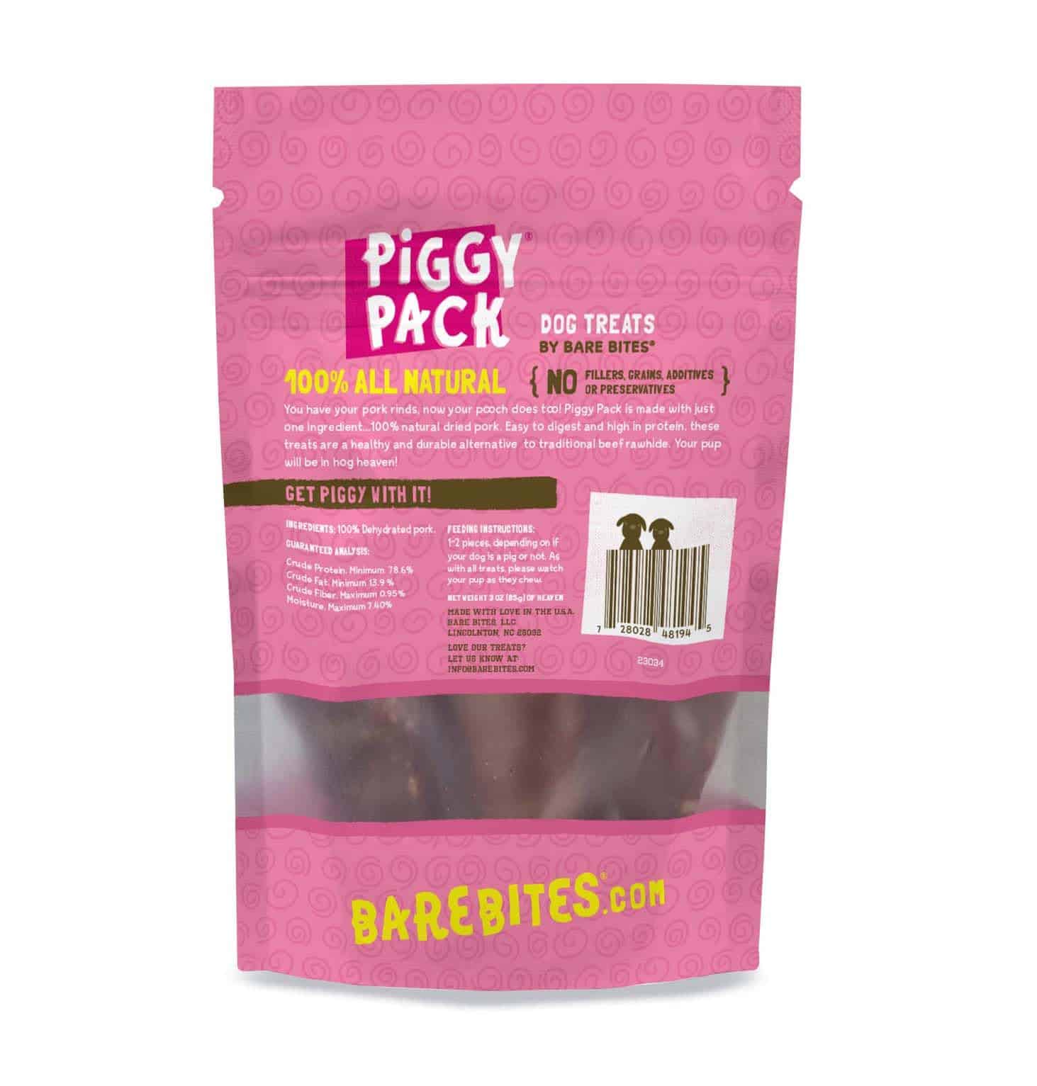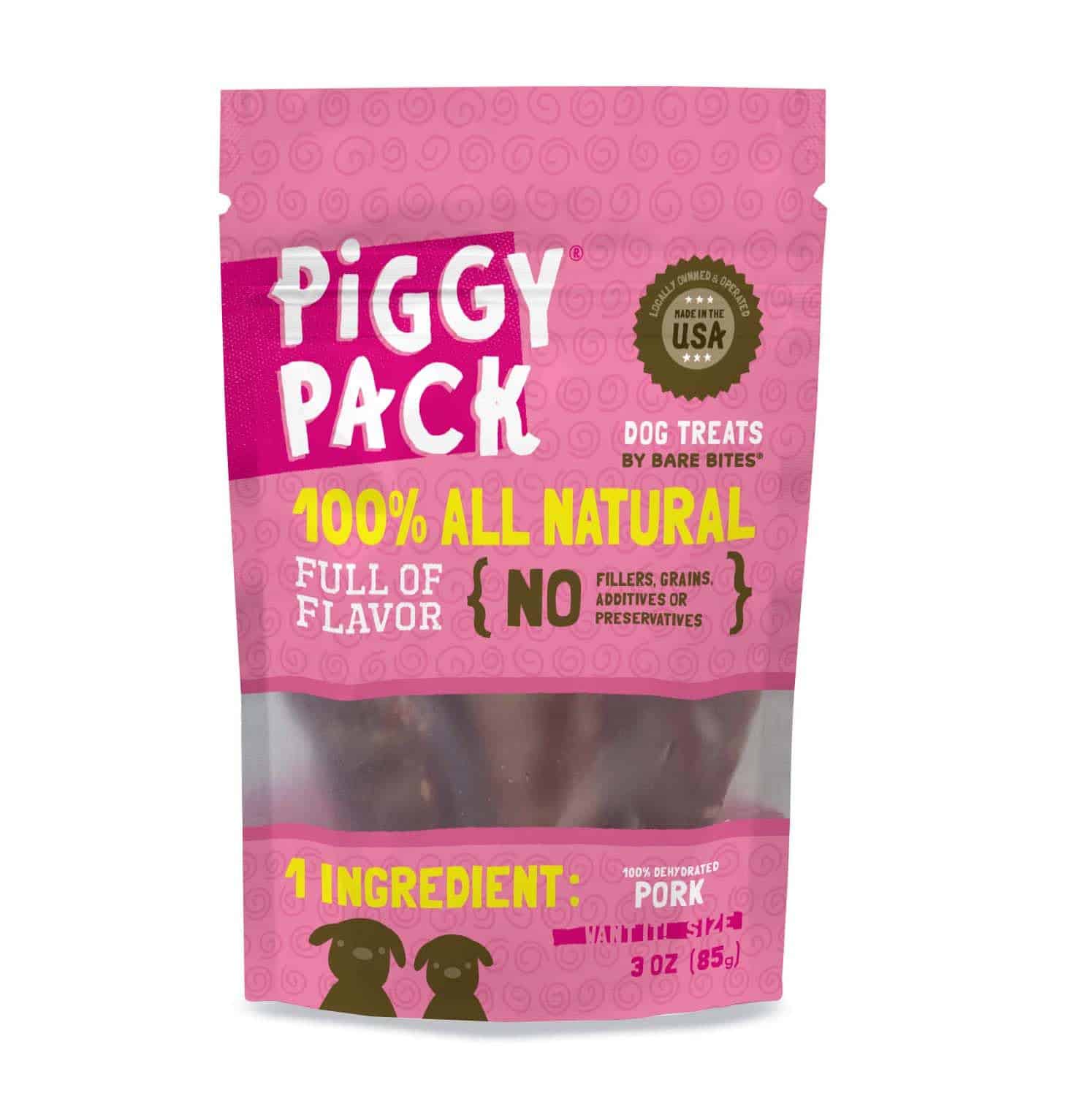 Bare Bites Piggy Pack Dog Pork Jerky Treats, Todo Natural,