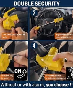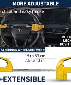 Proteja su vehículo sin problemas. Es completamente adaptable y fácil de instalar, diseñado para adaptarse a una amplia variedad de vehículos con volantes de 7.5-13 pulgadas. Su diseño extensible le permite instalarlo y quitarlo en segundos, sin complicaciones ni configuraciones engorrosas. Además, ofrece múltiples posiciones de bloqueo, brindándole la flexibilidad que necesita para proteger su auto sin esfuerzo.