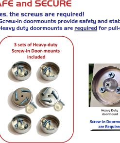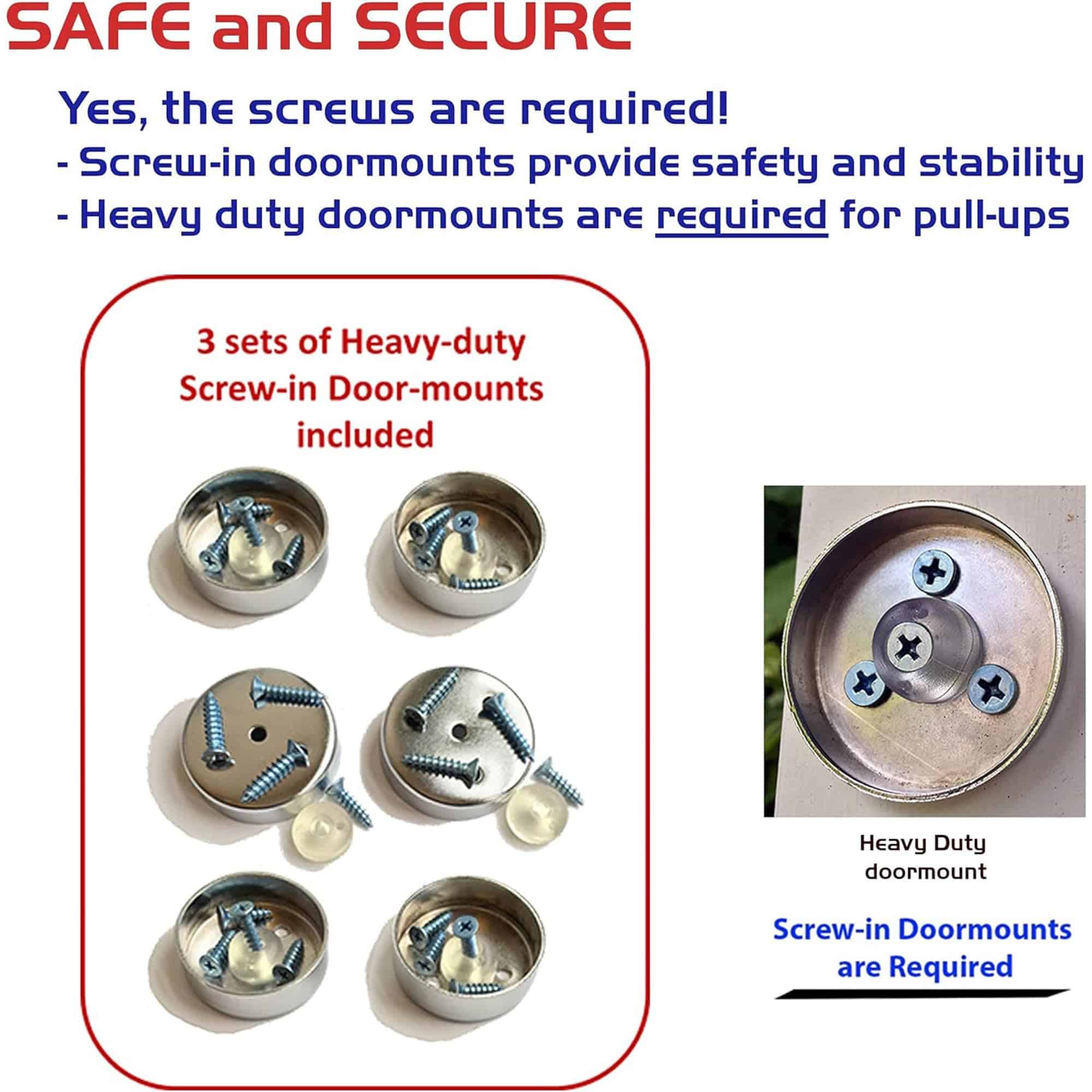 Nota de montaje: Siempre asegúrese de fijar la barra al marco de la puerta con el juego de soportes para puerta de alta resistencia y tornillos proporcionados.