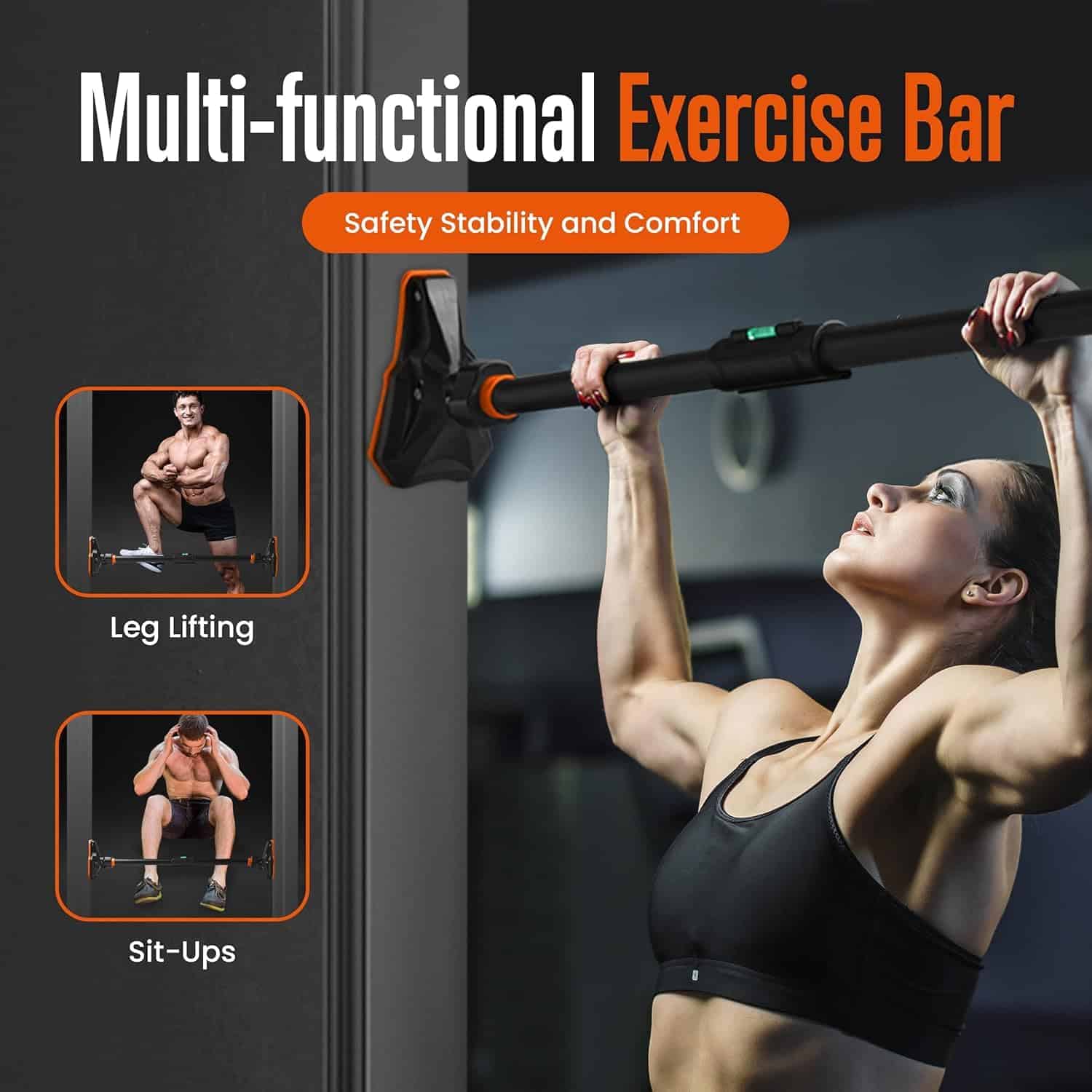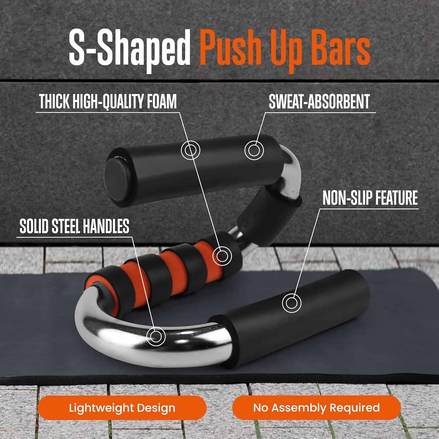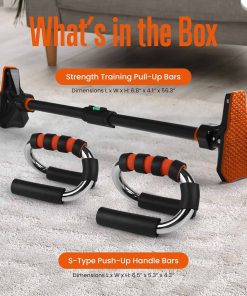 Nuestra barra de dominadas incluye refuerzo de tubo de acero y bloques antideslizantes ampliados para proteger las puertas de daños. Ajustable de 43 a 62 pulgadas, no se requiere perforación, cuenta con una gran área de contacto para una alta resistencia. Con diseño de bloqueo de seguridad en ambos lados del dispositivo para evitar deslizamientos y rotaciones durante el entrenamiento. Además, tiene mango acolchado de espuma para mayor comodidad. Nuestros mangos de flexiones están diseñados para durar y proporcionar un agarre fuerte para garantizar un entrenamiento seguro. El diseño en forma de S de los mangos añade estabilidad durante tus ejercicios y entrenamientos, además de proteger las superficies del suelo. Los mangos de flexiones tienen un mango acolchado de espuma que te permite realizar flexiones efectivas sin dolor de muñeca. Utiliza estos mangos y la barra de dominadas juntos para un entrenamiento efectivo. Capacidad de peso: 992.1 libras. Instalación sencilla y sin herramientas que se puede completar en minutos, lo que te permite concentrarte más en tu entrenamiento y menos en la configuración.