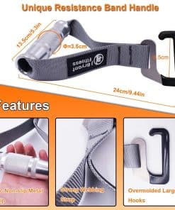 1. Gancho tipo e único: Gancho tipo e grande hecho de acero inoxidable. Forma única perfecta para bandas de resistencia anchas, fácil de colgar o quitar. 2. Alta calidad: Nuestros productos están hechos de aleación de aluminio de alta calidad, gancho tipo e de acero inoxidable y cinta de doble capa engrosada, que aumentan la vida útil del mango. 3. Paquete incluido: 2 piezas (un par) de mangos para bandas de resistencia (sin incluir la banda de resistencia), barra corta de 155 cm para bandas de resistencia (sin incluir la banda de resistencia). 4. Puede realizar varios ejercicios, como sentadillas, prensas de pecho, prensas de banco, prensas militares, filas verticales, fondos de tríceps, curl de bíceps, elevaciones de piernas, peso muerto, flexiones, terapia física, rehabilitación, entre otros.