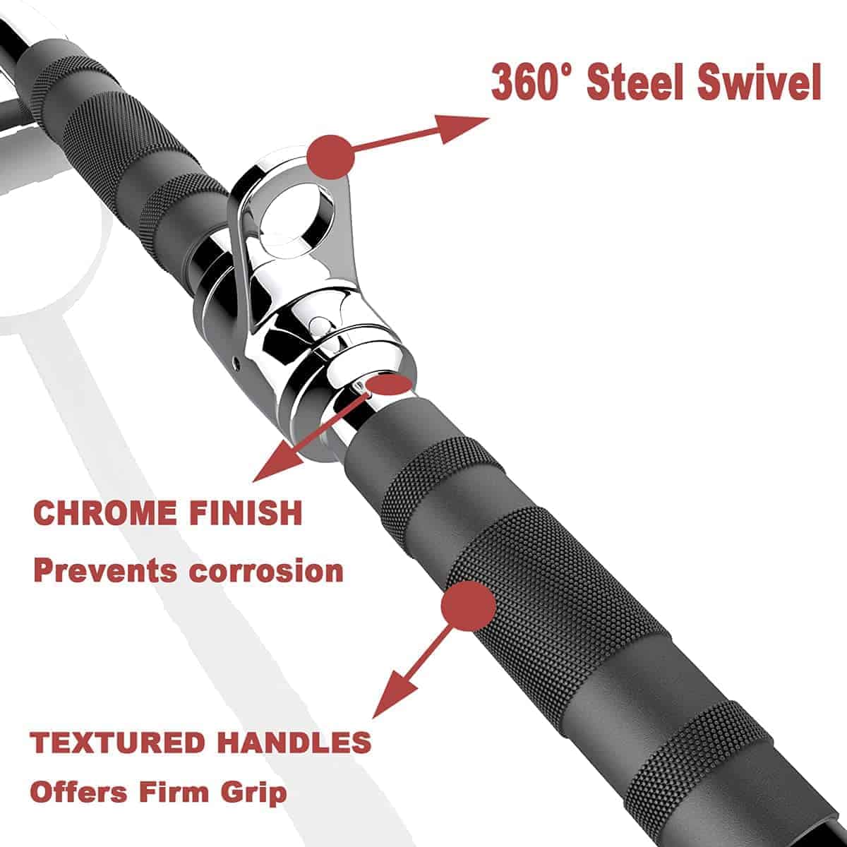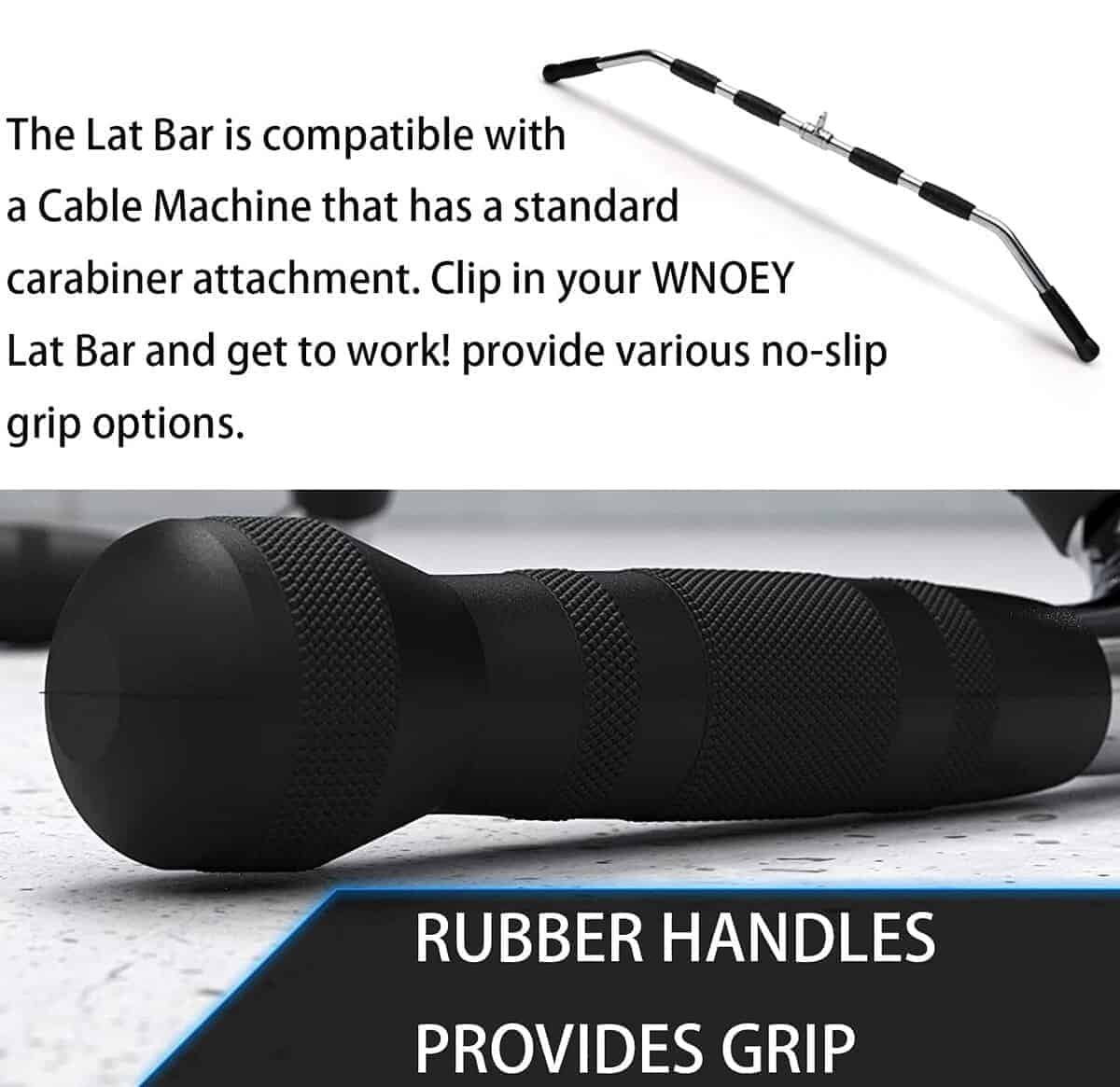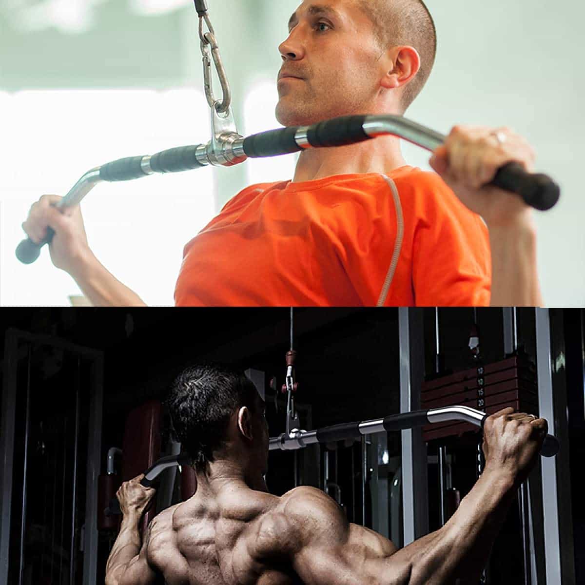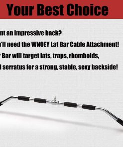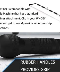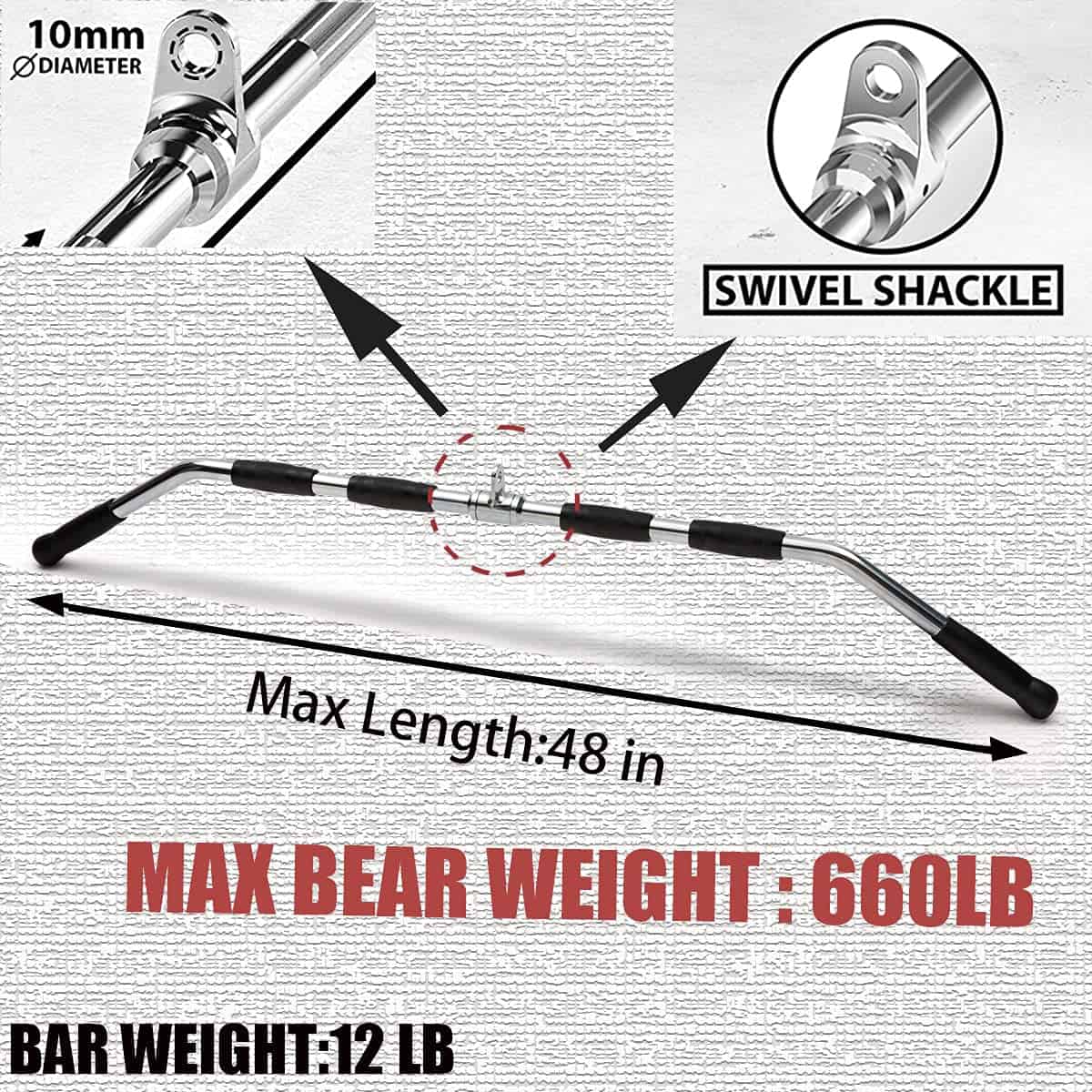 Barra de Lat Cable con Empuñaduras de Goma, Barra de Curl Sólido de Lujo para Gimnasio en Casa. Esta barra de latissimus es un accesorio ideal para tu equipo de gimnasio casero. Con empuñaduras de goma para un agarre cómodo y un colgador giratorio, esta barra te permite realizar una variedad de ejercicios de fortalecimiento. Hecho de materiales resistentes y duraderos, esta barra es perfecta para tu rutina de entrenamiento diario.