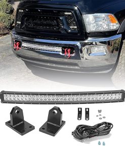 Este kit permite a los propietarios de camionetas RAM instalar una barra de luces curva / recta de 32″ en su parachoques de fábrica.
