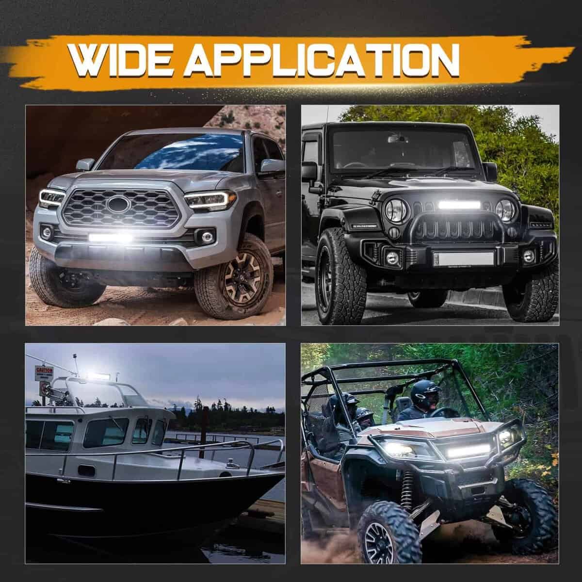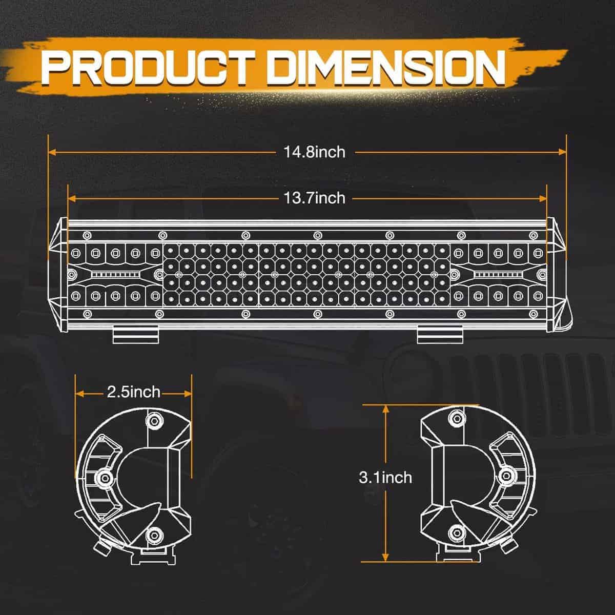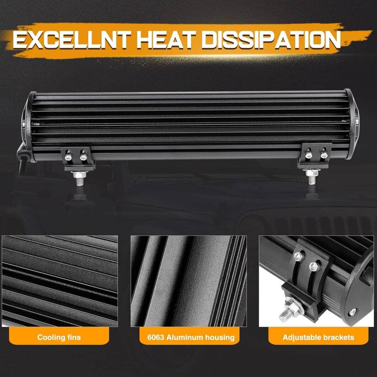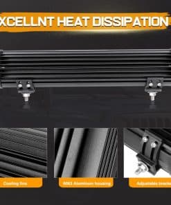 Niking Auto se compromete a diseñar y fabricar Luces y Accesorios Automotrices de alto rendimiento, duraderos y con una excelente relación calidad-precio para conductores de todo el mundo. Elegir la barra de luces LED adecuada puede mejorar en gran medida la seguridad y tu disfrute de conducir por la noche. CARACTERÍSTICAS -Los chips LED OSRAM Quad row proporcionan una luz brillante enfocada, los triples row en ambos lados ofrecen una visibilidad periférica adicional. -Dos filas adicionales de chips LED sobre el tamaño estándar de la barra de luces de doble fila. -Reflector especial de copa profunda puede emitir una luz brillante para conducir. ESPECIFICACIONES -LED: 112 piezas de Chips OSRAM -Potencia: 336W -Lúmenes / Flujo luminoso: 33,600 lúmenes -Temperatura de color: 6,000K – 6,500K -Material: Carcasa de aluminio fundido a presión; Lente de PC -Calificación a prueba de agua: IP68 -Voltaje de trabajo: 9 – 30V DC -Temperatura de trabajo: -40 ~ 85 grados -Vida útil de trabajo: Más de 50,000 horas Aplicación 1. Vehículo todoterreno: Camión, Jeep, SUV, UTE, 4×4, 4WD, ATV, UTV, etc. 2. Usos en interiores son Iluminación de jardín y patio incluso iluminación de almacén. 3. Vehículo especial (camión de bomberos, vehículo de rescate, vehículo de comunicación, vehículo de mando militar) montacargas, trenes, barcos, autobuses y tanques, etc. Paquete Incluido: 1 x 15 pulgadas Barra de Luces LED Todo el kit de montaje necesario Una vez que hayas completado la instalación, disfruta de tu orgullo y alegría lo antes posible. Diviértete y mantente seguro.