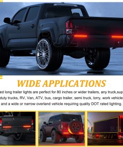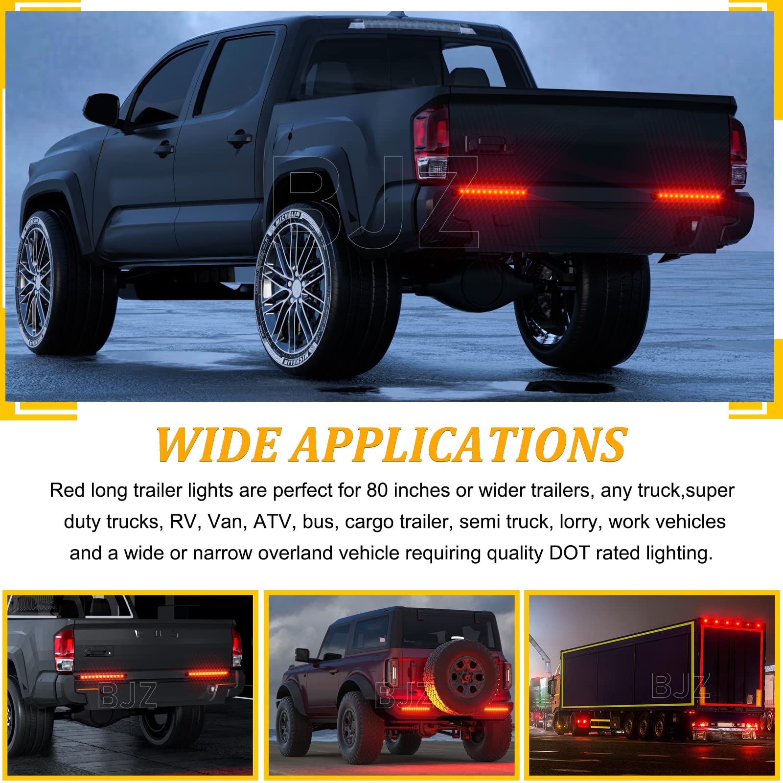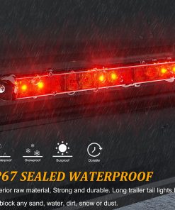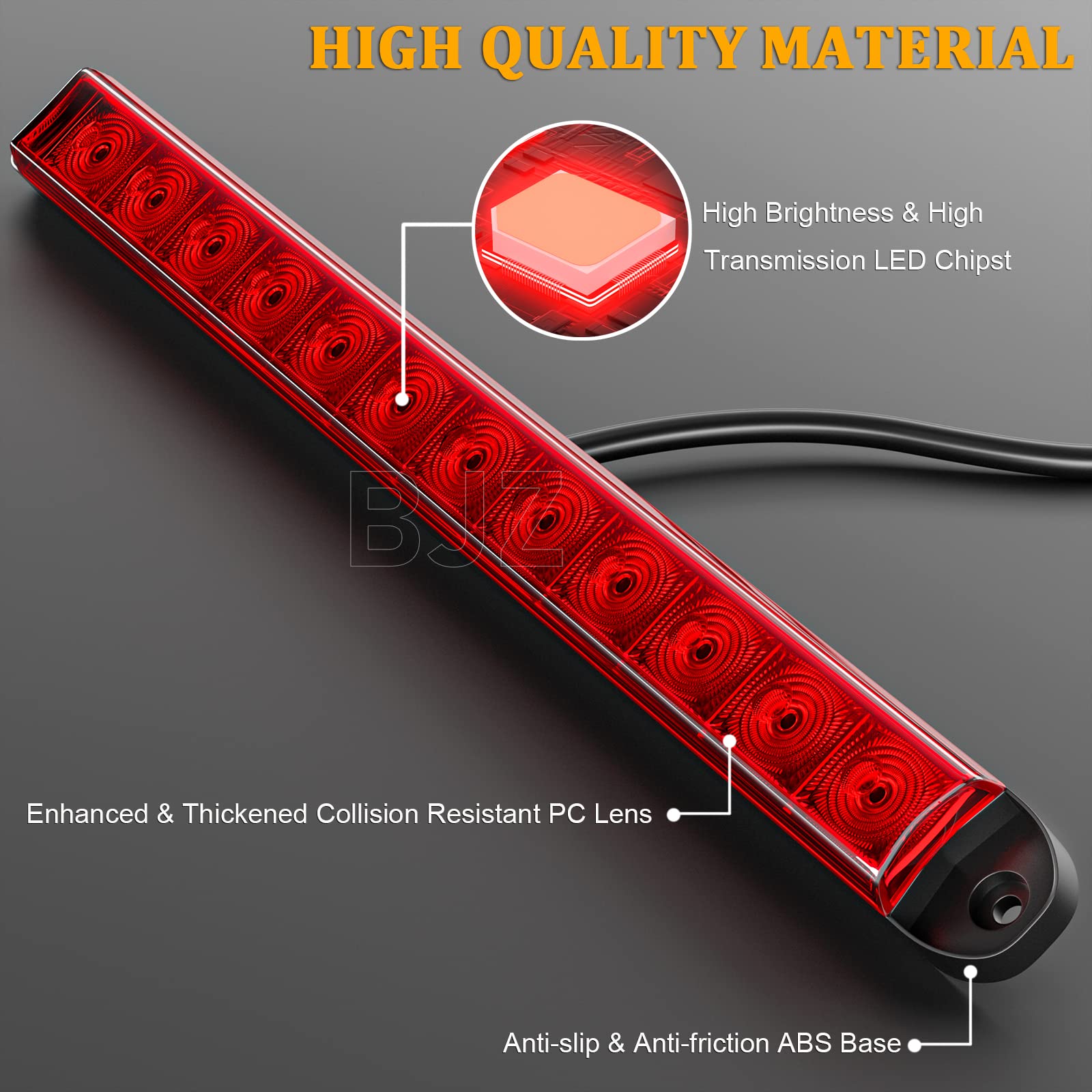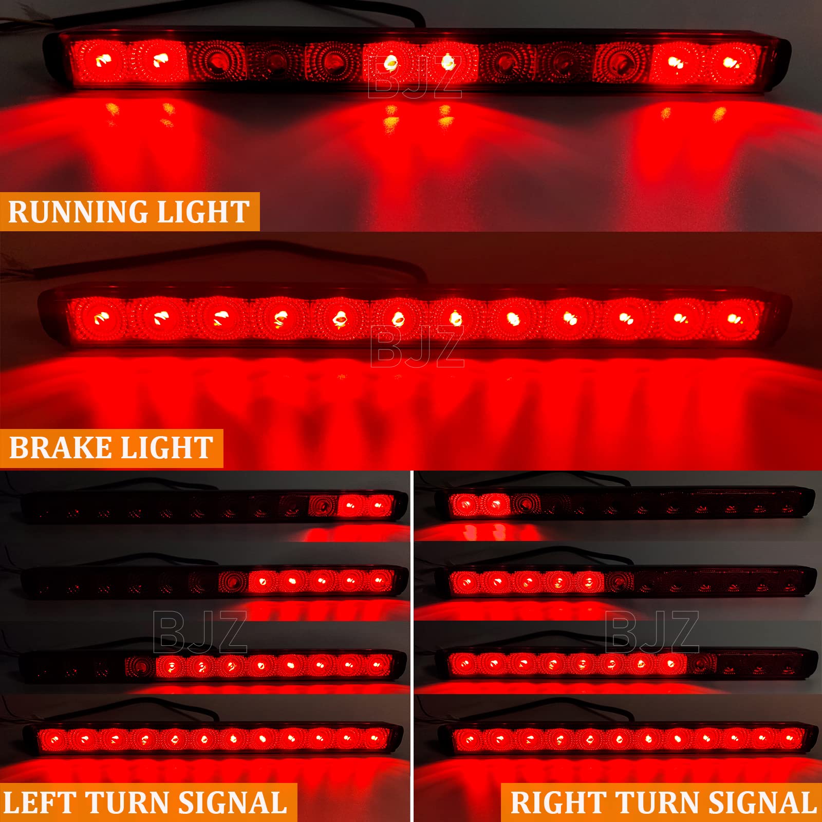 1. Luces de cola LED compatibles de 16 pulgadas con 12 LEDs rojos, súper larga barra de luces de cola para remolque que integra luces de marcha trasera, luces de freno y luces intermitentes izquierda/derecha. Montada en la parte superior o entre las luces traseras de camiones/remolques de 80 pulgadas o más grandes, mejorará la visibilidad de los vehículos para aumentar su seguridad en carretera y la de otros automovilistas.