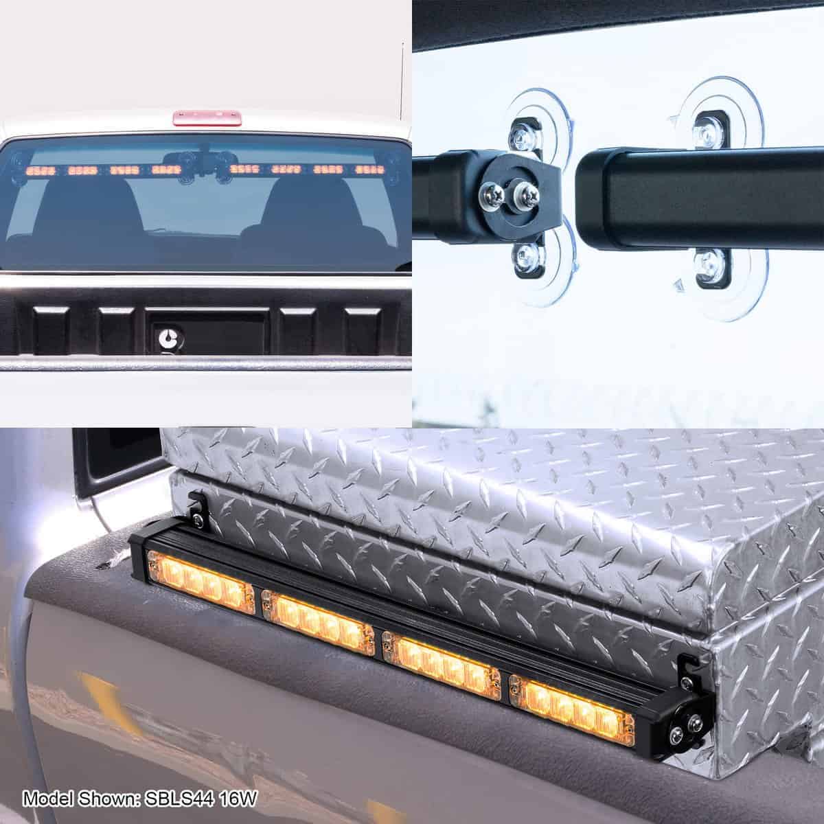 Hacer que otros noten la presencia de su vehículo es fácil con la barra de luz de advertencia LED SolarBlast SBLS84 de 32W con controlador. El SBLS84 tiene 48 patrones de destello seleccionables, incluye hardware de montaje para montaje permanente y temporal, se puede utilizar en aplicaciones interiores o exteriores y se opera a través de un controlador con luces indicadoras de patrón de destello. El soporte giratorio incluido permite que la barra de luz direccional SBLH84 se monte contra la ventana trasera de automóviles y camiones. La capacidad de montaje en superficie permite que la barra de luz de advertencia LED se monte contra estantes de camiones y carrocerías de camiones de caja. La ventosa permite reposicionar la barra de luz de advertencia de tráfico con facilidad. Lleno de características, la barra de luz direccional LED SBLS84 cumple y supera las necesidades del personal de respuesta de emergencia. Intercambiable/Compatible con: Todos los automóviles y dispositivos equipados con una fuente de alimentación de 9-30 Voltios CC. Características: Controlador incluido, Modos direccionales con solo presionar un botón (Izquierda, Derecha y Centro), Indicador LED que muestra el modo actualmente activo. Soporte de montaje giratorio innovador para montar en cualquier superficie horizontal, inclinada o vertical. Puede montarse de forma permanente con tornillos o con ventosa. Cable de 16 pies de la barra de luces al controlador. Módulo LED de 4W reemplazable. 32 LED de alta intensidad con lentes ópticas. 48 patrones de destello seleccionables. Recuerdo del último patrón de destello. Sincronización entre múltiples unidades. Contenido del producto: 1 x Unidad de luz 1 x Unidad de controlador de dirección de tráfico 2 x Paquete de accesorios de montaje Manual del propietario Especificaciones: Corriente de entrada @ 12V/24V: 3.01A/1.51mA Garantía de 1 año