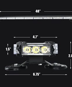 La Barra de Luz Estroboscópica LED de Emergencia de 48″ está diseñada para ser instalada en todo tipo de vehículos y camiones que cuentan con una fuente de alimentación de 12 voltios. Ofrece una cobertura de 360 grados con lentes ópticas TIR impermeables IP65. Posee hasta 30,000 horas de vida útil y 7 diferentes patrones de destello, con función de memoria para recordar el último patrón utilizado. Fácil de instalar y utilizar, resistente y duradera para soportar condiciones adversas. Los LED brillantes son visibles incluso durante el día. Incluye también 4 bases magnéticas pesadas, cable recto de 8.2 pies, enchufe de encendedor de cigarrillos de 12V y tornillos de instalación. Este producto recomienda una instalación profesional.