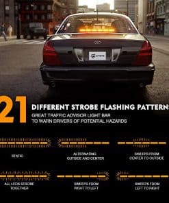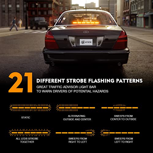 Barra de Luz Estroboscópica de Emergencia LED Ámbar. La barra de luces de advertencia Xprite cuenta con 6 módulos LED que suman un total de 24 chips LED de alta potencia. La lente de inundación mejorada es más brillante y efectiva que las barras de luz antiguas, siendo visible incluso en condiciones diurnas. Con más de 50.000 horas de vida útil. Incluye 2 soportes de ventosa fuertes y estables para una instalación estable mejorada. Ideal para vehículos de emergencia, servicio postal, vehículos de construcción, luces de crucero, coche de seguridad, vehículos plow, remolque, etc. Se monta en el interior de los coches en el parabrisas delantero / trasero, visera, cubierta, tablero, etc. Interruptor conveniente para encender y apagar, con un segundo interruptor para cambiar entre 21 patrones de destellos diferentes. Fácil instalación con 2 ventosas más fuertes o montaje con tuercas y tornillos incluidos. Accesorios adicionales vendidos por separado para mayor comodidad.