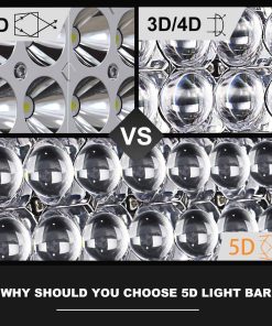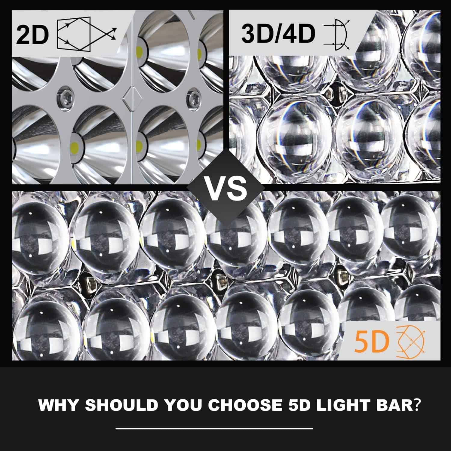 1. Nuestra serie de barras de luz LED 5D son nuestra serie de mejor rendimiento, y es fácil ver por qué. Estas luces cuentan con nuevas ópticas 5D que acoplan un reflector interno para enfocar toda la luz en las lentes de aumento. Esta combinación elimina cualquier pérdida interna de luz y garantiza que toda la luz generada por el chip LED se proyecte hacia afuera. Lo cual aumenta sustancialmente la eficiencia y la salida de luz total de la barra de luz LED.