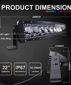 Lpteso RGBW Curved LED Light Bar 22Inch 120W Flood Spot Combo Beam 2PCS 4 Inch 18W Flood RGB LED Pods with 16 Solid Colors Chasing RGB Halo Ring Changing with Strobe Flashing with Rocker Switch Wiring es una barra de luz LED de alta calidad diseñada para una amplia variedad de aplicaciones off-road. Con un anillo Halo RGB que cambia de color, esta barra de luz LED ofrece 16 colores sólidos y más de 92 modos de destello estroboscópico para personalizar la iluminación de tu vehículo. Con LEDs Premium de alta calidad y copas reflectoras profundas, esta barra de luz emite una luz más brillante y a una distancia más lejana, lo que ilumina claramente tu camino en terrenos difíciles. Con un nivel de protección IP67, esta barra de luz LED es resistente al agua, al polvo y a los golpes, lo que la hace ideal para uso en exteriores. El soporte de montaje ajustable permite ajustar la barra de luz a unos 45 , y la carcasa de aluminio fundido y el soporte de acero inoxidable garantizan una durabilidad excepcional en condiciones adversas. Con su amplia aplicación, esta barra de luz LED curvada es adecuada para vehículos off-road, camiones, SUVs, ATVs, UTVs, barcos y más. Incluye un interruptor basculante, arnés de cableado de control y soportes de montaje, así como una garantía sin problemas de un año y un servicio gratuito de por vida. No dudes en contactarnos si tienes alguna pregunta.