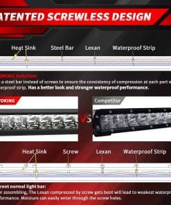 4WDKING de los Estados Unidos, con sede en California. Desde 2008, 4WDKING ha sorprendido a los entusiastas del automóvil entregando iluminación LED de alta calidad para todoterreno que fusiona la asequibilidad con un diseño innovador. Diseñado por el conocido diseñador estadounidense. Respirador impermeable de grado militar para mantener el equilibrio del aire interno y externo elimina la formación de niebla o condensación dentro de la lente. El diseño de copa de luz de una sola pieza es mejor para la estabilidad óptica y menos luz dispersa. El diseño sin ruido del viento reduce la resistencia al correr del automóvil, conducirá de forma más cómoda. Soporte de montaje lateral de acero inoxidable ajustable, 360 de rotación para una instalación y uso más flexibles. Aplicaciones: -Iluminación de vehículos todo terreno: La barra de luz LED puede aplicarse ampliamente a pick-up pesado Texas, ATV, motocicleta Arizona, 4×4, UTV, SUV Nueva York, RV, vagón, furgoneta, camper, buggy de carretera, riel de arena, tren, autobús, etc. -Iluminación marina: Esta luz de cubo se puede instalar en barcaza de pato Florida, yate, lancha Wisconsin, barra, barco de carga y barco para mejorar el brillo iluminante del viaje. -Iluminación industrial y agrícola y de equipos e iluminación doméstica: Se ajusta perfectamente para remolque, montacargas, excavadora, topadora, rodillo de carretera, grúa, tractor Missouri, cosechadora, sembradora, cortadora de césped vuelta cero Utah, remolque de nieve Illinois, carrito de golf, motonieve Ohio, camión de bomberos, vehículo de rescate, camping, minería de Georgia, construcción e iluminación exterior. Especificación: Voltaje de entrada: DC9-36V Temperatura de funcionamiento: -40~185 Temperatura de color: 6500K. Material: Aluminio Contenido del paquete: 2x Barra de luz LED de 6″ de fila sencillo. Juego de soportes de montaje y tornillos. NOTA: Solo para uso todoterreno. No lo use si se requiere DOT. Garantía de 12 meses, contáctanos a tiempo para cualquier problema.