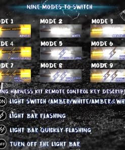 2, Arnés de cables gratuito, el color blanco y ámbar pueden iluminarse por separado y juntos.