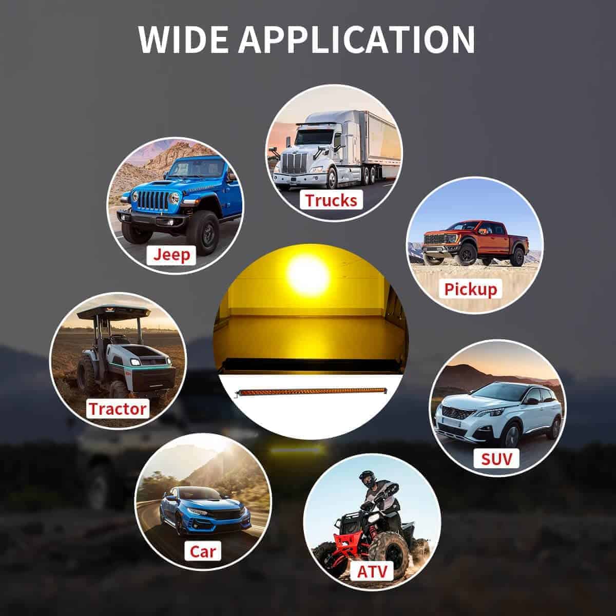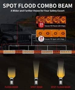 Barra de luz LED LASFIT de 42 pulgadas, luz ámbar de fila