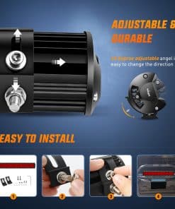 Potencia LED: 420W (80 x 3W LED de alta intensidad). Patrón de haz: Combo de Spot & Flood Beam. Voltaje de entrada: 9-30V DC (compatible con vehículos de 12V, 24V). Temperatura de trabajo: -40~85 grados Celsius. Temperatura de color LED: Rojo 601NM. Material: Perfil de aleación de aluminio 6063, Chips LED de alta calidad, Lente de PC. Corriente de trabajo: 12V/6.93A, 24V/3.18A. Aplicaciones: Iluminación de vehículos todo terreno: Los pods LED se pueden aplicar ampliamente a Tractor, 4×4, Coches, Pick-up, Van, Camioneta, Buggy de Carretera, Sand Rail, Trenes, Autobuses, Tanques, etc. Iluminación de barcos: Las luces se pueden instalar en barcos, yates, botes de carga y barcos para mejorar el brillo de la iluminación durante el viaje. Luces de caza: Caza de peces, caza de jabalíes, caza de ciervos, cebo, coyotes, etc. Iluminación de equipos: Las luces de conducción LED son adecuadas para Remolque, Montacargas, Excavadora, Topadora, Rodillo de carretera, Grúa, Tractor, Cosechadora, Sembradora de granos, Cortadora, Quitanieves, Camión de bomberos, Vehículo de rescate, Camping, Minería, Construcción y otras iluminaciones al aire libre. Nota: Son piezas de repuesto. No aprobado por el D.O.T. No utilices si se requiere la aprobación de D.O.T. Solo para uso fuera de la carretera. Antes de instalar este producto, por favor revisa las leyes y regulaciones estatales/provinciales y locales/municipales.