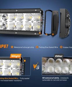 ESPECIFICACIONES: Potencia LED: 312W (104PCS LEDS de alta intensidad de 3W) Voltaje de entrada: 9-30V CC Tipo de haz: Haz de inundación Spot Combo Tasa impermeable: IP67 Temperatura de color LED: 6000K-6500K Vida útil de trabajo: más de 30,000 horas Temperatura de trabajo: -40 ~ 85 grados Material: Perfil de aluminio 6063, Soporte de acero inoxidable, Lente de PC Compatible con vehículos de 12V y 24V La superficie de vidrio está hecha de lente de vidrio templado con alta transmisión de luz. Diseño adecuado para la eliminación de calor. Alto rendimiento de impermeabilidad, a prueba de polvo, a prueba de golpes. APLICACIONES: Usos interiores: Iluminación de jardín, Iluminación de patio trasero Avisos: Necesita usar un transformador para convertir el voltaje a 12V CC antes de los usos interiores. Los usos exteriores son principalmente para Jeeps, Coches, Camiones, Motocicletas, Autobuses, ATVs, SUVs, Barcos, equipamiento de construcción y muchos vehículos todo terreno. Avisos: El arnés de cableado necesita usarse bajo los voltajes relevantes. Asegúrese de que el arnés de cableado coincida con el voltaje de operación correcto. Paquete Incluye: 1PCS Barra de luz LED de 312W Son piezas de repuesto. NO están aprobados por el Departamento de Transporte. No utilizar si se requiere la aprobación del Departamento de Transporte. Solo para uso fuera de carretera. Las leyes concernientes a este producto varían de estado a estado. En algunos estados, los usos fuera de carretera también están prohibidos. El fabricante y el minorista no asumen ninguna responsabilidad por cualquier uso o aplicación de este producto en violación de cualquier ley aplicable. Antes de instalar este producto, consulte las leyes y regulaciones estatales y locales.