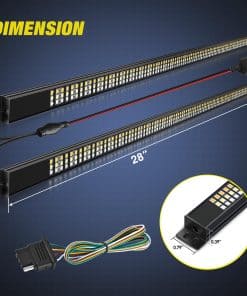 La barra de luz para la puerta trasera del camión Nilight de 56 pulgadas tiene triple fila de chips LED, cada tira de luz tiene 288 LEDs SMD2835 súper brillantes, un total de 576 chips LED con alta calidad, salida eficiente y lúmenes que pueden iluminar fácilmente tu camino de viaje, asegurar tu seguridad de día y de noche. Tamaño de la barra de luz individual: 28»(longitud) 0.79»(ancho) 0.39»(alto), un total de 2 piezas. Por favor, mide el tamaño de tu camión para ver si se ajusta antes de comprar. La barra de luz para la puerta trasera emite luz de marcha roja oscura, luz de freno roja brillante, luz de reversa blanca, señales de giro secuenciales rojas, luz estroboscópica secuencial. 200-300% más brillante que la 1ª generación y la mayoría de las tiras de luz en el mercado. Diferente de la tira de luz de PVC, esta barra de luz para la puerta trasera con marco de aluminio adopta la tecnología de impermeabilización de resina epoxi IP65, que tiene las características de resistencia al agua, resistencia a la corrosión química y cristalinidad, resistir cualquier clima y entorno duro. Dura con una vida útil de más de 50,000 horas. No es necesario taladrar, solo pelar y pegar, conector plano de 4 pines estándar plug and play. Viene con un cable conector de 4 vías plano, también puedes cablearlo directamente y usar los soportes y tornillos adicionales para mayor seguridad, sin preocupaciones de que se caiga. Esta barra de luz para la puerta trasera es de 56 pulgadas de largo y es adecuada para la mayoría de pickups, remolques, camiones, vehículos de remolque, autos, SUV, RV, Van, etc. NOTA: Si hay una advertencia al enchufar en el puerto del remolque, por favor conecta el cableado de luz del coche siguiendo la secuencia de líneas. Garantía de 12 meses otorgada por Nilight.