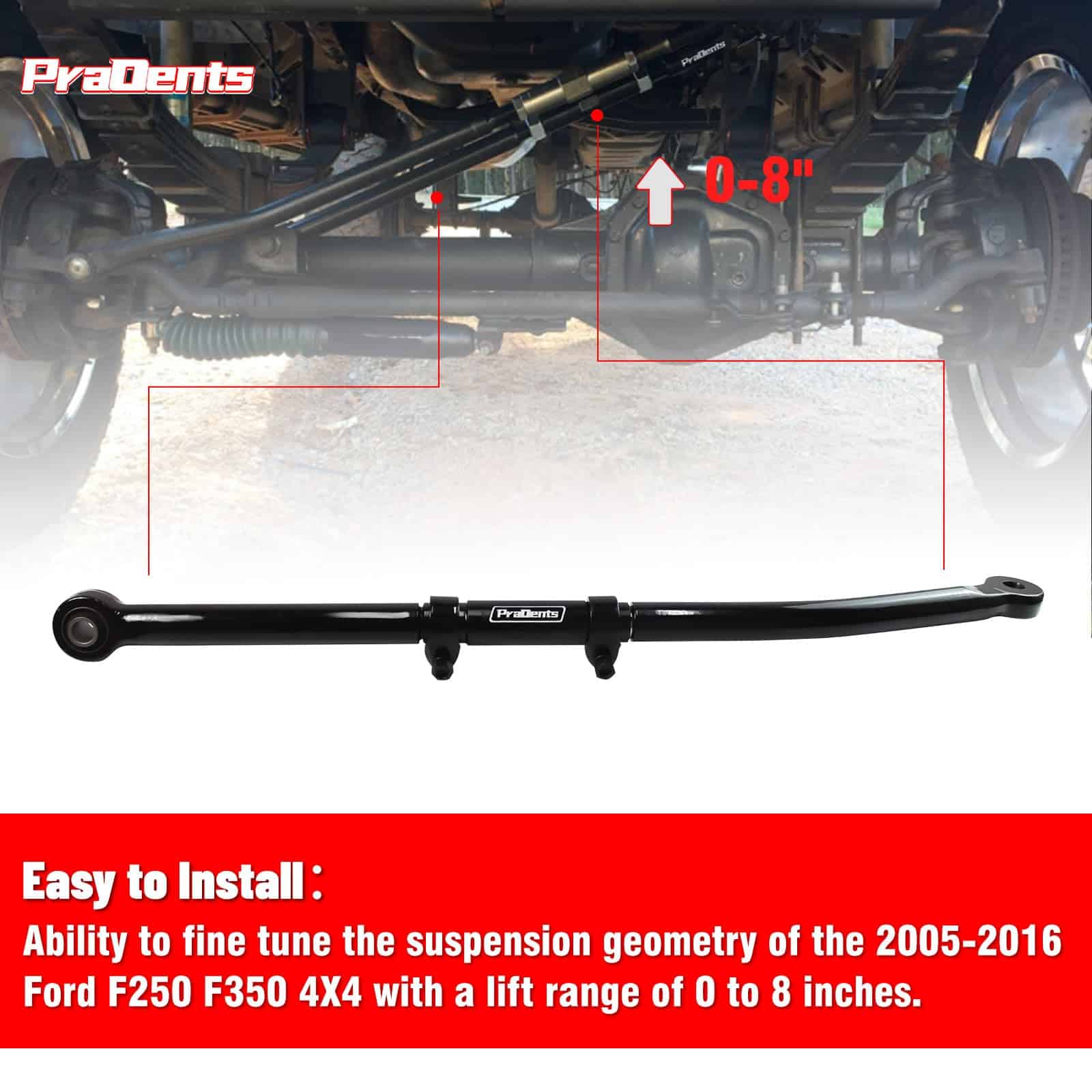 1. Alineación precisa: Esta barra de seguimiento ajustable garantiza una alineación precisa para su Ford F250 F350 4X4 2005-2016, optimizando el manejo y el desgaste de los neumáticos.