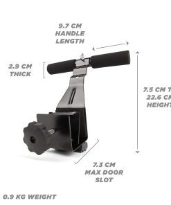 Simplemente desliza el dispositivo debajo de la puerta y ajústalo. Luego pon en marcha tus abdominales con abdominales o crunches.
