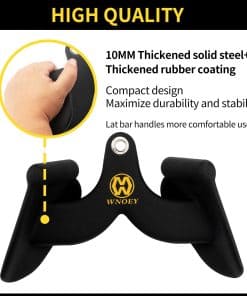 Tricep Bar tiene una encapsulación de goma que proporciona agarres suaves y cómodos para evitar problemas de óxido y molestias causadas por agarres manuales prolongados. Recibirás dos barras de tirar: una de tamaño 33″X6.5″ y otra de 13″X5″, los accesorios de tirar hacia abajo de LAT están hechos de acero sólido de alta calidad, con un revestimiento de goma engrosada en el exterior. El diseño del mango ergonómico se enfoca en el grupo muscular de la espalda objetivo en comparación con otros mangos redondos de barra de lat. Los agarres universales grandes cuentan con un gancho grande de 5 pulgadas de largo, material de acero sólido adecuado para uso en todos los hogares y lugares de fitness. Conveniente y versátil. El revestimiento engrosado del Tricep Bar proporciona agarres suaves y cómodos para evitar problemas de óxido y molestias causadas por agarres manuales prolongados. Resistente y duradero, siendo la mejor opción para tu barra de tirar hacia abajo. La barra de entrenamiento de fuerza de espalda se conecta fácilmente a tu máquina de cable, máquina Smith, etc. El acero sólido de alta calidad soporta hasta 880 lbs de tracción. Ejercita tus tríceps, bíceps, espalda, hombros y abdominales, y mejora tu agarre incorporando los accesorios de tirar hacia abajo de lat en tu rutina de entrenamiento.