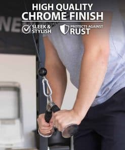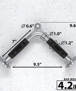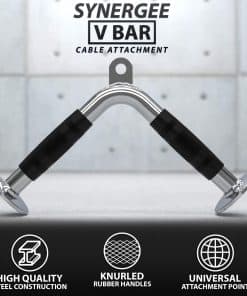Su punto de sujeción universal te permite engancharla fácilmente a cualquier máquina de cable que tenga un mosquetón estándar, lo que te brinda la libertad de trabajar tus tríceps de la manera que prefieras. La Barra en V de Synergee viene como una sola pieza sólida y cuenta con mangos de 6 pulgadas de largo, 25 mm de diámetro y un peso de 4 libras.