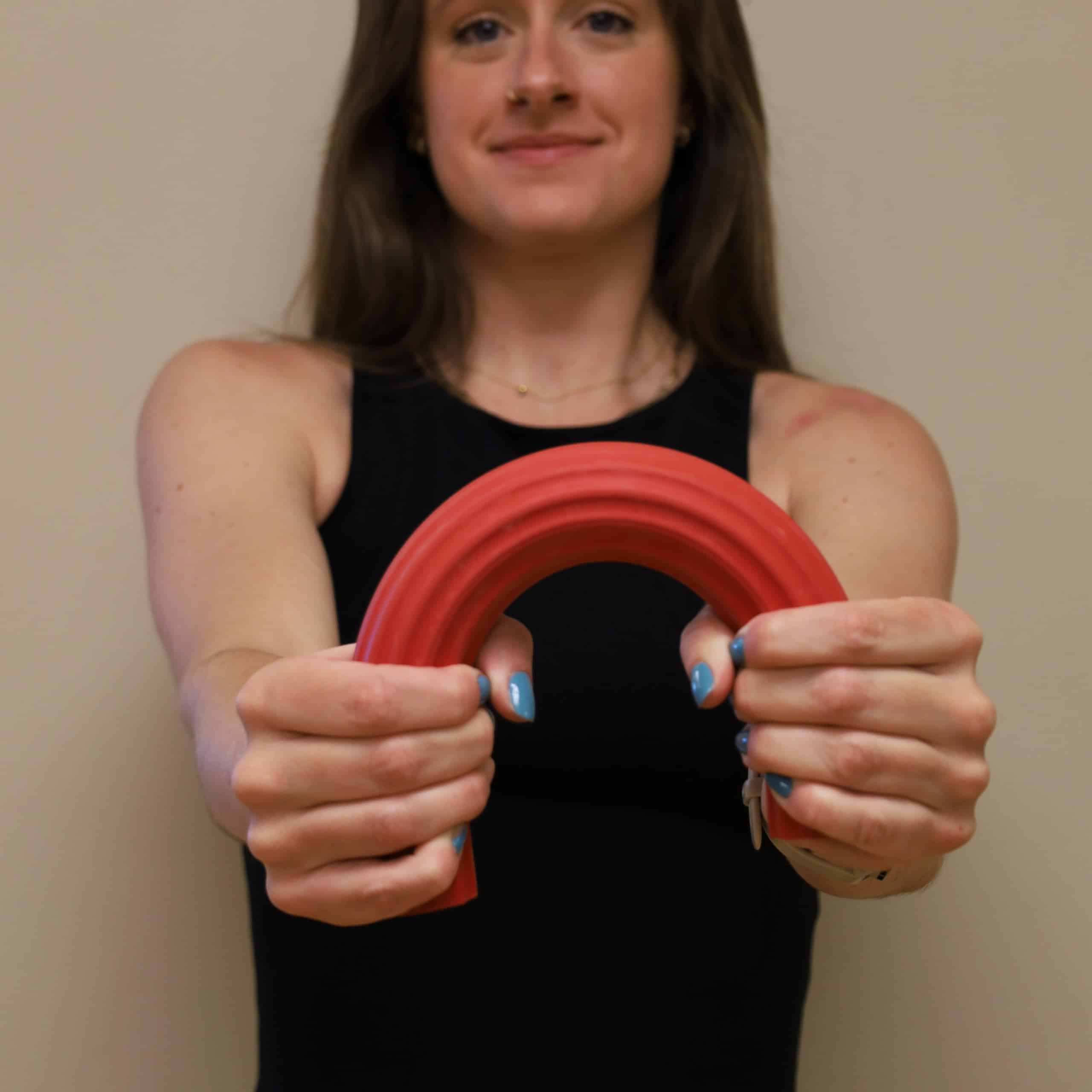 4. AGARRE MEJORADO. Este dispositivo de terapia física cuenta con crestas exteriores a lo largo de la barra para un agarre mejorado. Se recomienda para usuarios que sufren de uso excesivo de la mano, brazo, codo y hombro para ayudar a reducir la incomodidad muscular y/o debilidad asociadas.
