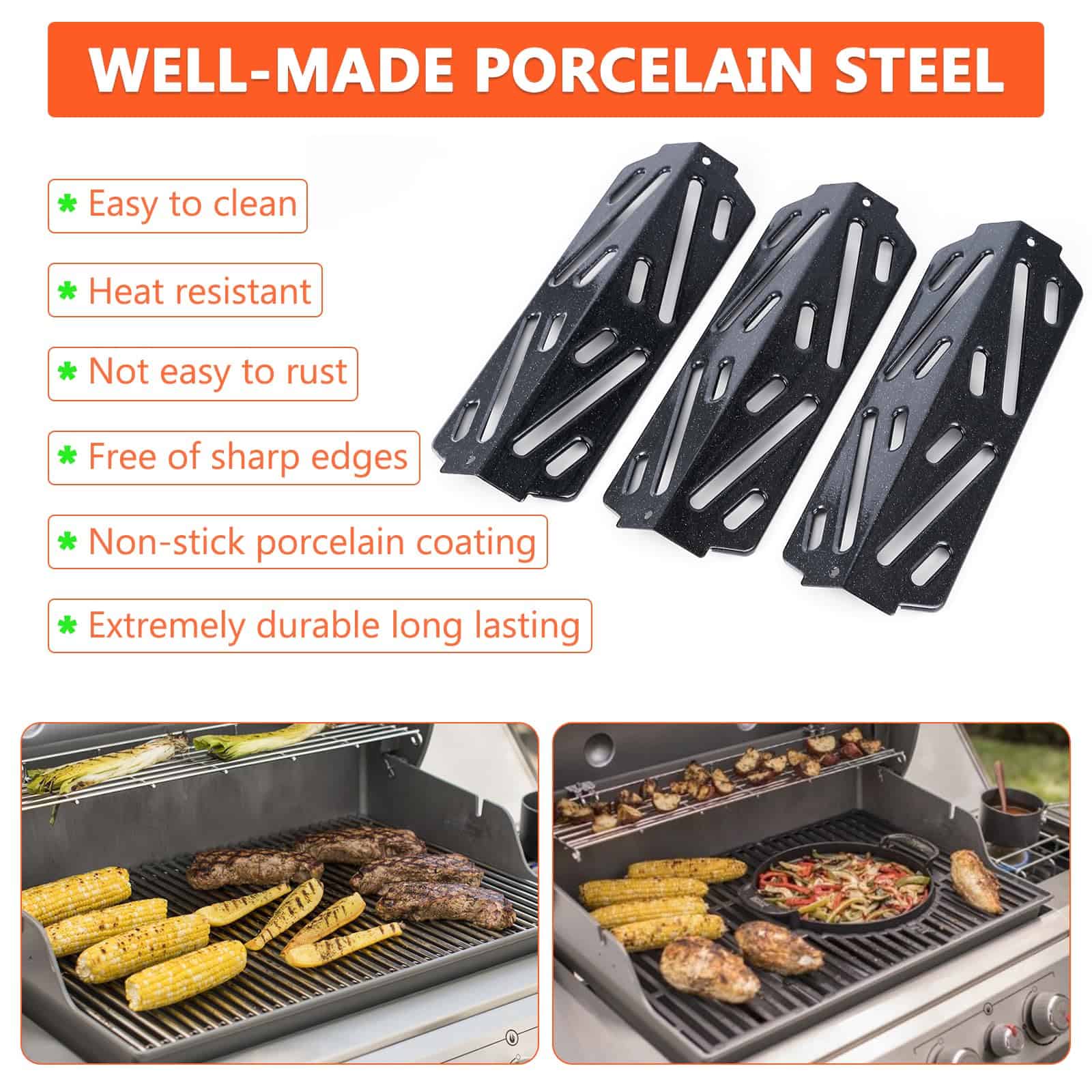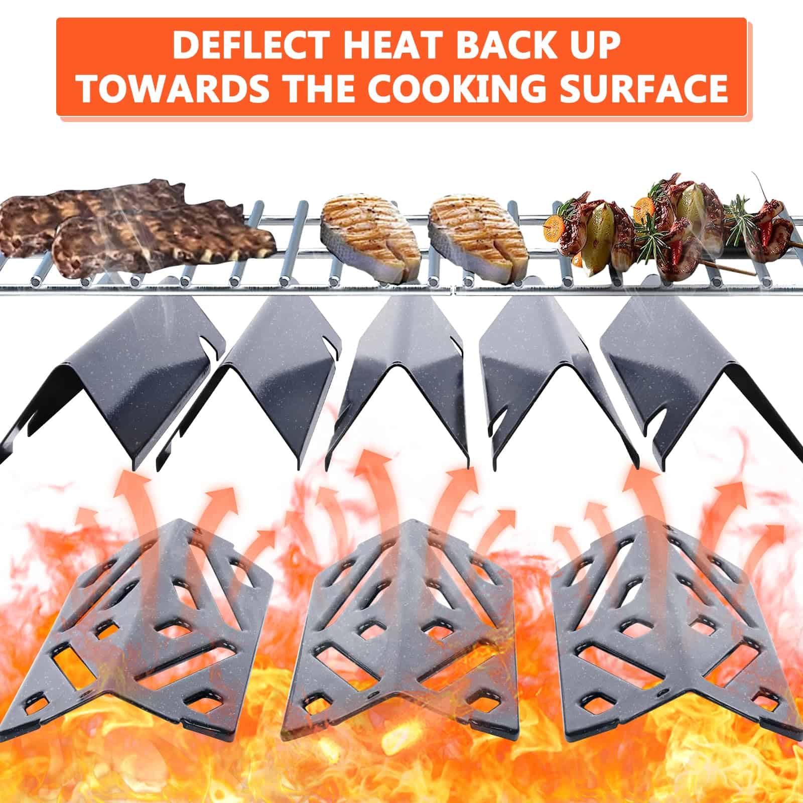 6. Protege y mejora tu parrilla. Estas piezas para parrilla evitan la exposición directa de los alimentos a las llamas, distribuyen el calor de manera uniforme y protegen tus quemadores de los goteos, asegurando un mejor rendimiento al asar y extendiendo la vida útil de tu parrilla. Perfecto para reemplazar las piezas desgastadas del Weber Genesis II E-310 o las Piezas de reemplazo de parrilla Genesis 2 Weber.