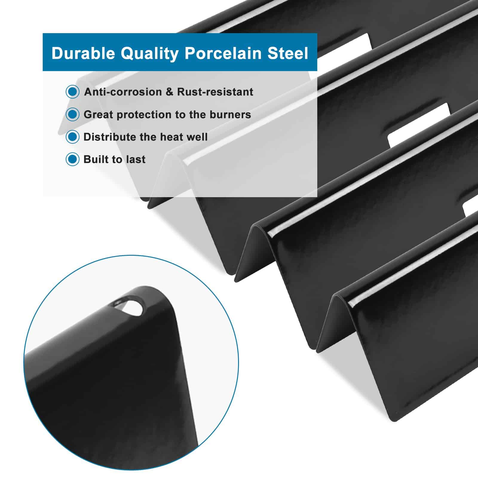 Barras saborizantes de 17.5 pulgadas para piezas de parrilla Weber Genesis. Reemplazo para Genesis 300, E310 E320 E330 S310 S320 S330 parrillas con perillas de control frontal. Las barras saborizantes esmaltadas porcelana son compatibles con Weber Genesis E-310, E-320, E-330, S-310, S-320, S-330 y Genesis EP/CEP 310 320 330 Gas Grills, reemplazan a las Weber 7620 7621. No son compatibles con las parrillas de las series Genesis II 300 o Genesis II LX 300. Dimensiones: 17.5″D x 2.36″W x 2.36″H. Incluye 3 piezas. Fabricadas con acero esmaltado porcelana de alta calidad, resistente a altas temperaturas y corrosión. Fáciles de instalar y limpiar. Verificar la compatibilidad con el tamaño y modelo de las piezas originales antes de comprar.