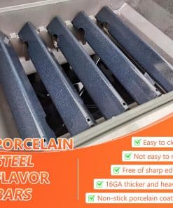 Estas barras saborizantes para la serie Genesis II ofrecen un rendimiento excepcional en términos de ajuste, durabilidad y distribución del calor. Con un grosor de 16GA, están fabricadas con acero grueso que proporciona una protección duradera para sus quemadores. Las barras saborizantes de 66795 están diseñadas para resistir un uso pesado y altas temperaturas, lo que garantiza un rendimiento fiable temporada tras temporada. Distribuyen el calor de manera uniforme por toda la superficie de la parrilla y mejoran el sabor de los alimentos al vaporizar los goteos, creando el rico y ahumado sabor que los aficionados a la barbacoa desean. Además, la exclusiva capa de porcelana esmaltada con diseño de punto de nieve de QuliMetal ofrece una resistencia superior a las altas temperaturas y minimiza el desconchado con el tiempo, lo que garantiza un rendimiento más duradero en comparación con el esmalte negro estándar. Estas barras son una excelente actualización para las piezas de Weber Genesis II E-310.