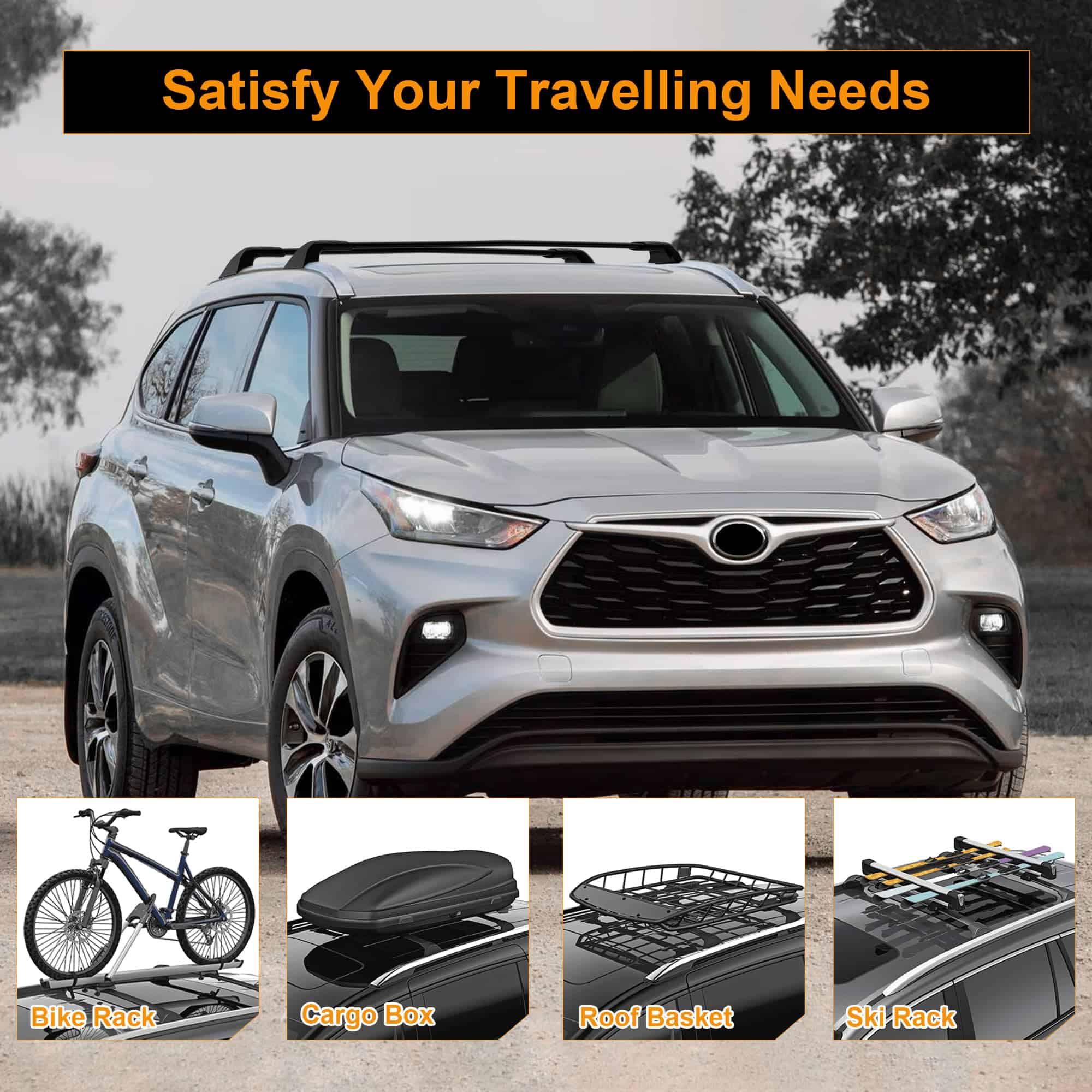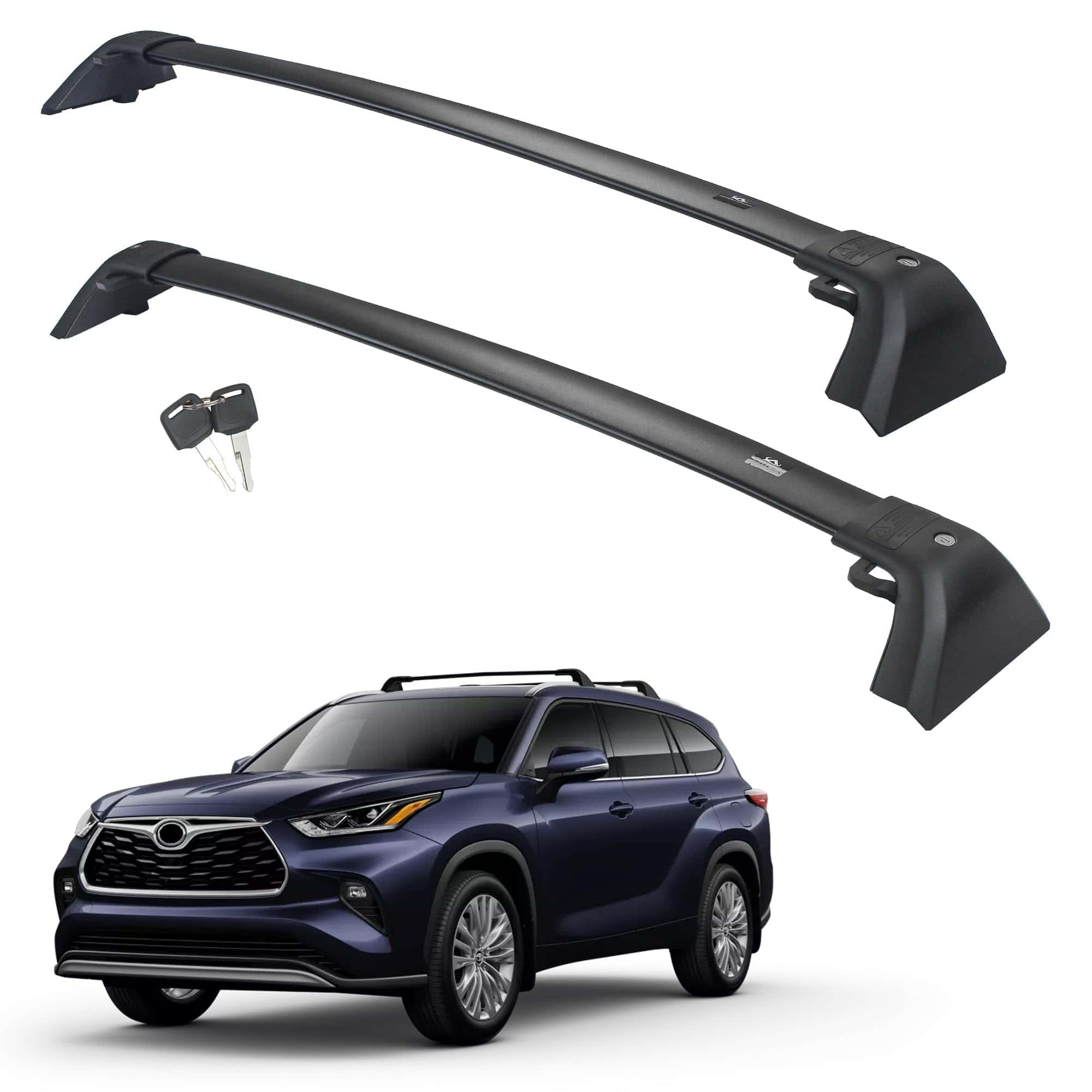 Barras Transversales de Techo de alta resistencia Autekcomma diseñadas como reemplazo para Highlander 2020-2025 (no aptas para modelos LE y Grand Highlander). Equipadas con un Mecanismo de Bloqueo Antirrobo y una capacidad de carga máxima de 260 lbs, estas barras ofrecen la combinación perfecta de seguridad y funcionalidad. Además, cuentan con Lazos de Amarre destacados para una sujeción adicional de la carga. ¡Haz que tu Highlander esté listo para la aventura con estas increíbles barras transversales de techo!