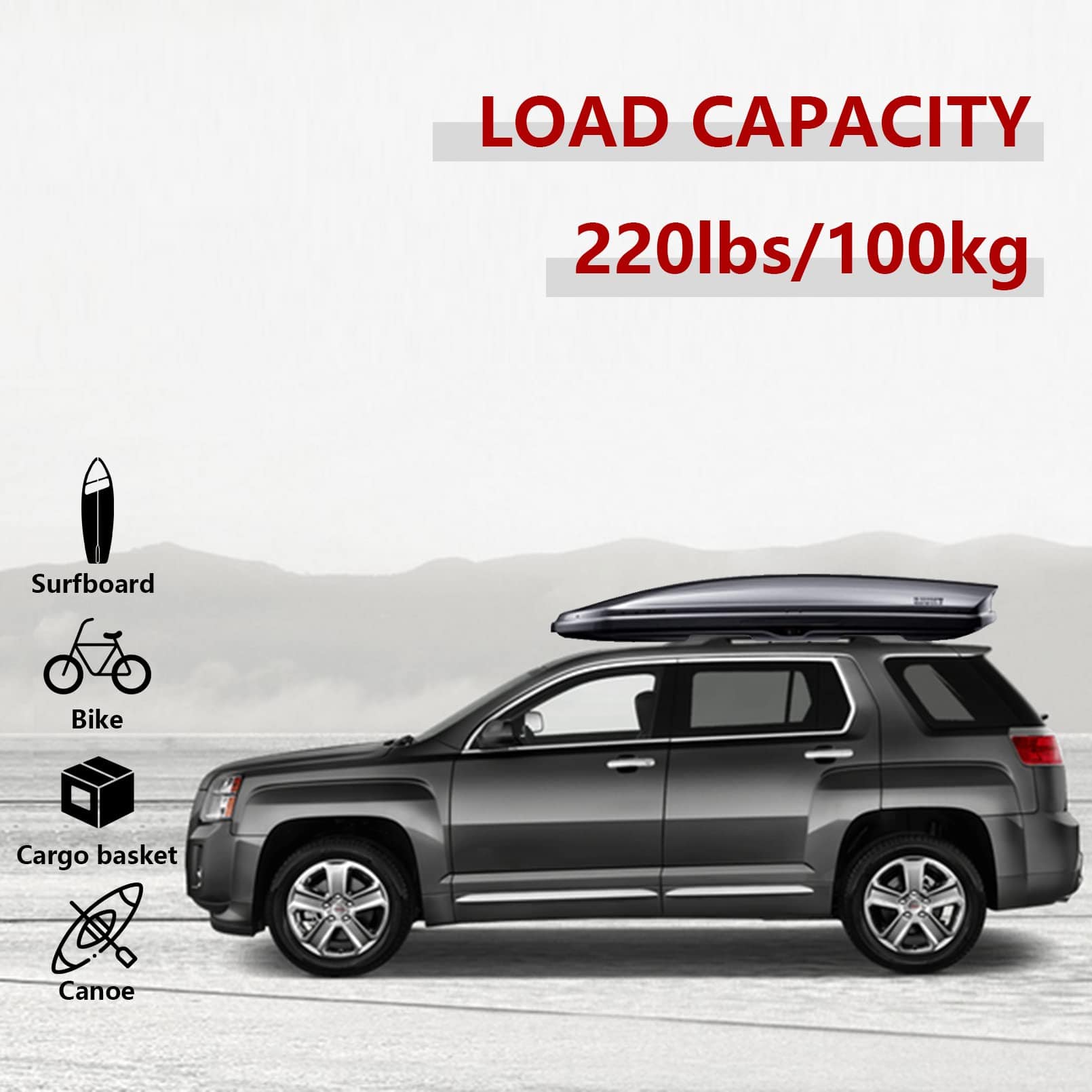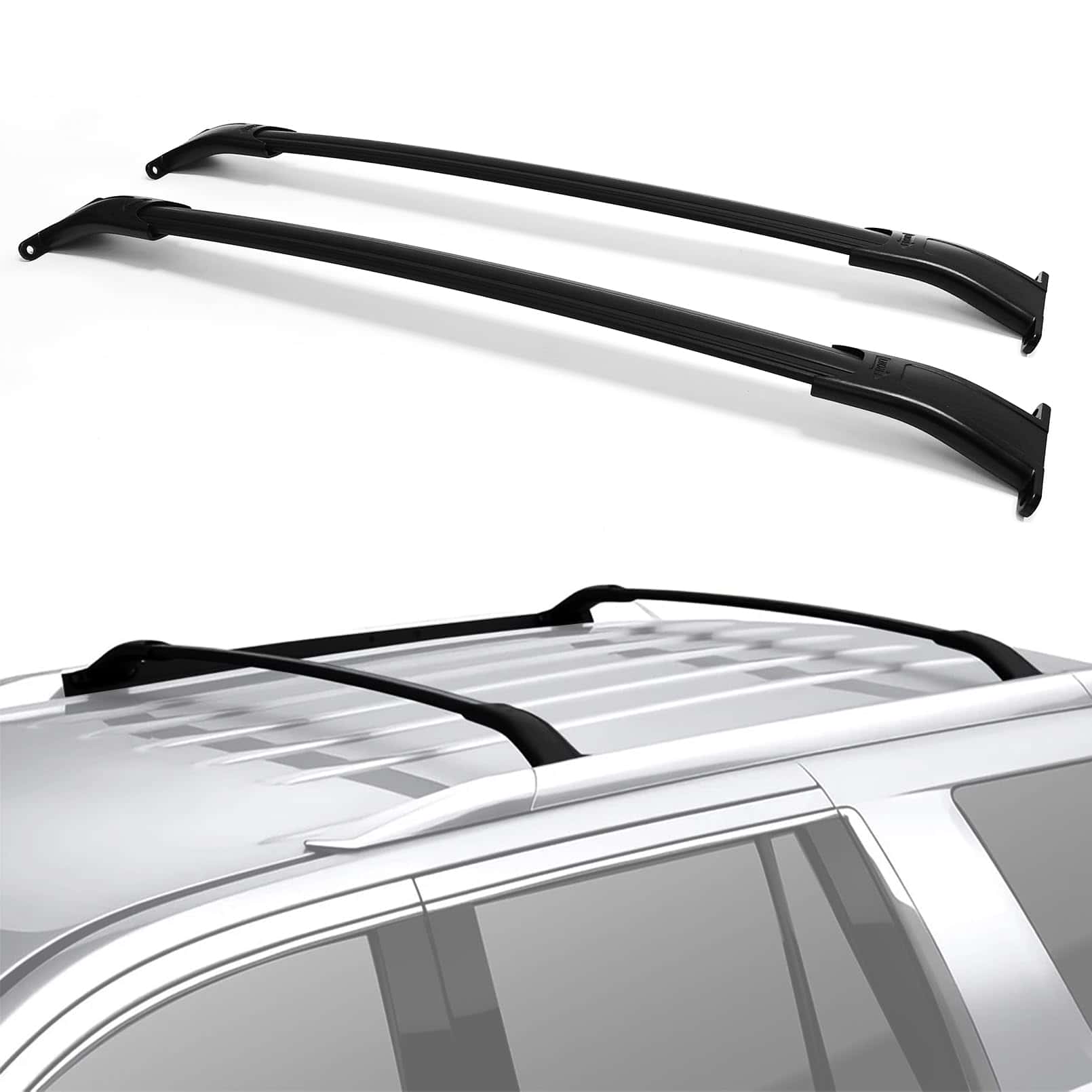 Material de alta calidad Fabricado con aleación de aluminio de alta calidad, es más resistente y duradero que todos los soportes de acero. Las barras de techo están recubiertas con polvo negro para hacerlas impermeables y resistentes a la corrosión.