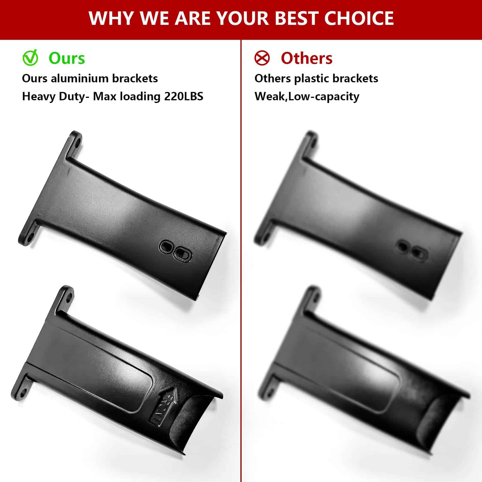 Diseño único Reduce eficazmente la resistencia al viento y el ruido. El diseño de abrazadera de servicio pesado garantiza que esté firmemente sujeto a los rieles laterales existentes para una máxima seguridad.