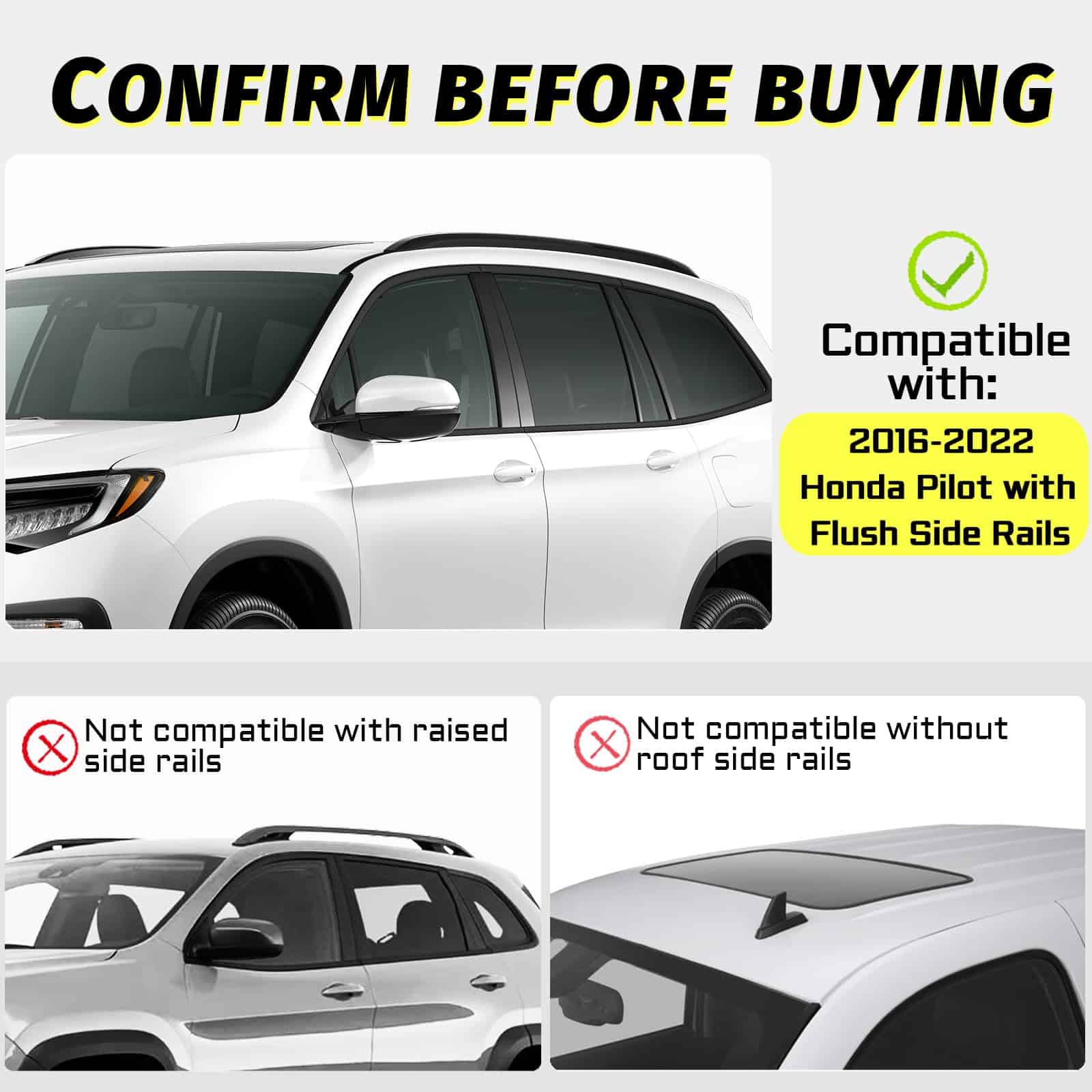 Las barras transversales de techo para automóviles son un accesorio imprescindible para los propietarios de Honda Pilot que desean aumentar la capacidad de carga de su vehículo de manera segura y conveniente. Este producto específico está diseñado para adaptarse a los modelos 2016-2022 de Honda Pilot que cuentan con rieles laterales de fábrica. Con un diseño aerodinámico que reduce el ruido del viento y la resistencia, estas barras transversales de techo están fabricadas en aluminio resistente y recubiertas en polvo negro para resistir la corrosión. Con una capacidad de carga de hasta 150 libras, estas barras transversales pueden transportar una variedad de accesorios de techo, como kayaks, bicicletas, cajas de carga y más. Instalar estas barras es rápido y sencillo, sin necesidad de perforaciones ni cortes. Proteja sus pertenencias y aumente la versatilidad de su Honda Pilot con estas barras transversales de techo de alta calidad.