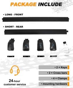 Paquete incluido: Un par de barras transversales con todos los tornillos y pernos necesarios.