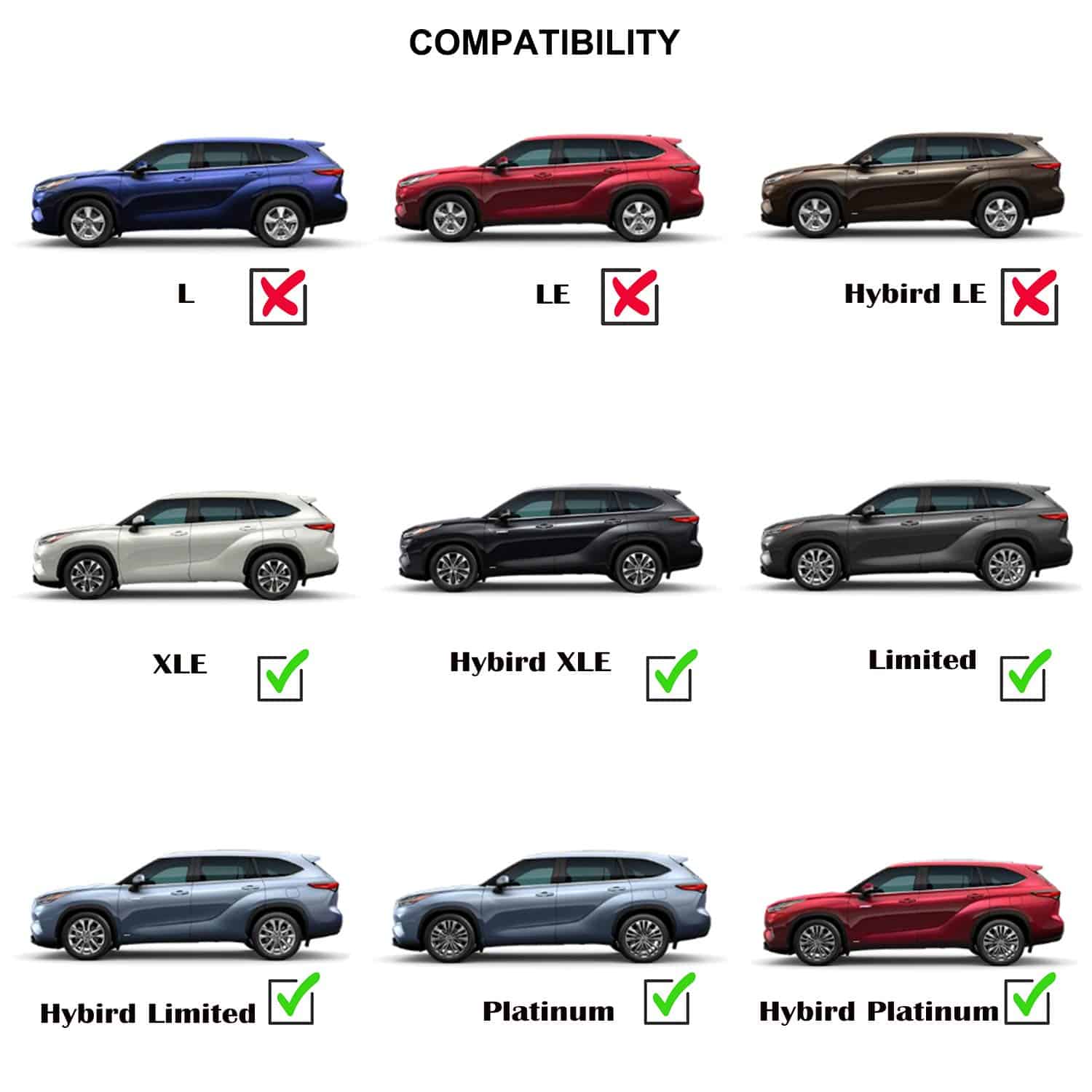 (NOTA: NO COMPATIBLE para modelos Toyota Highlander L, LE y Hybrid LE 2020-2021)