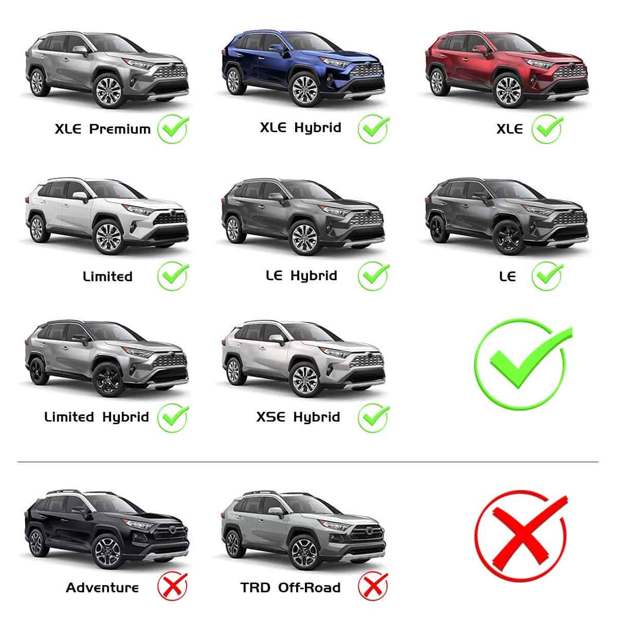 Ajuste: Toyota RAV4 2019 2020 2021 (No se ajusta a Adventure/TRD Off-Road) Por favor, verifica el modelo de tu auto antes de comprar.