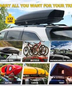 4. Amplia gama de usos: Las barras transversales brindan una base ideal para la instalación de portabicicletas, cajas de carga y otros accesorios de techo. Multifuncionales, ideales para aquellos a quienes les gustan las actividades al aire libre. El portaequipajes AUXMART se puede utilizar para transportar kayaks, canoas, equipaje, esquís, bicicletas de esquí, cañas de pescar, etc.