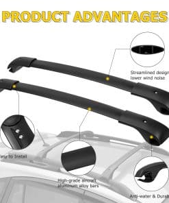 El diseño aerodinámico difunde mejor el flujo de aire para reducir el ruido del viento y mejorar la economía de combustible. Las juntas de goma suave en los rieles del techo evitan daños en la pintura. El plástico ABS fuerte y duradero y la instalación sin taladrar ofrecen seguridad y versatilidad extra.