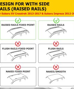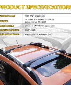 Nuestras barras transversales del portaequipajes son compatibles con Subaru XV Crossstrek 2013-2017 y Subaru Impreza 2012-2016 para ofrecer un portaequipajes más duradero para colocar equipaje. NO SE AJUSTA Forester, modelos no deportivos de Impreza o sedanes Impreza. (es decir, modelos sin barras laterales en el techo).