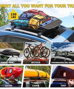 La capacidad máxima de carga del portaequipajes puede alcanzar las 150 libras/68 kg, puedes colocar fácilmente lo que quieras en la parte superior. Es la solución perfecta para sostener equipaje, carga, tablas de snowboard, esquís, bicicletas o kayaks en el techo, nunca tendrás que preocuparte de que no hay lugar para poner tus cosas pesadas.
