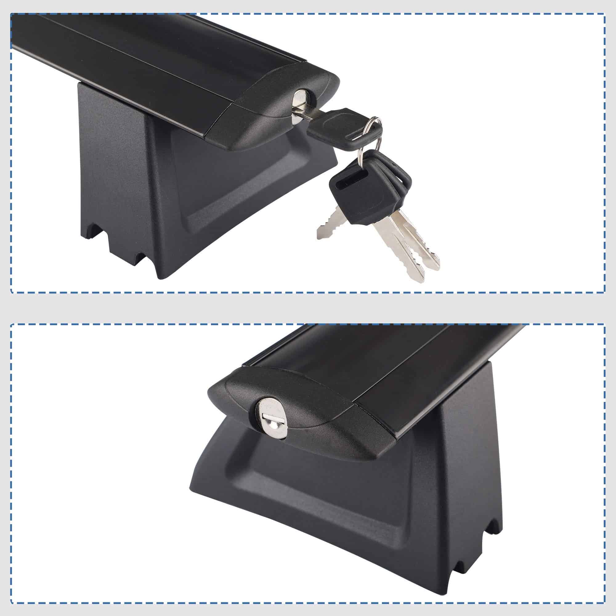 2. Excelente capacidad de carga: Las barras transversales del portaequipajes pueden soportar un peso máximo de hasta 165 libras (75 kg). Maximiza la capacidad de tu automóvil. Proporciona una buena base y comodidad para artículos que no caben en tu vehículo, como: tablas de surf, equipo de camping, canoas, kayaks, bicicletas, esquís, bolsas de techo, cajas de techo, artículos deportivos, escaleras, equipaje. ¡lo que quieras!
