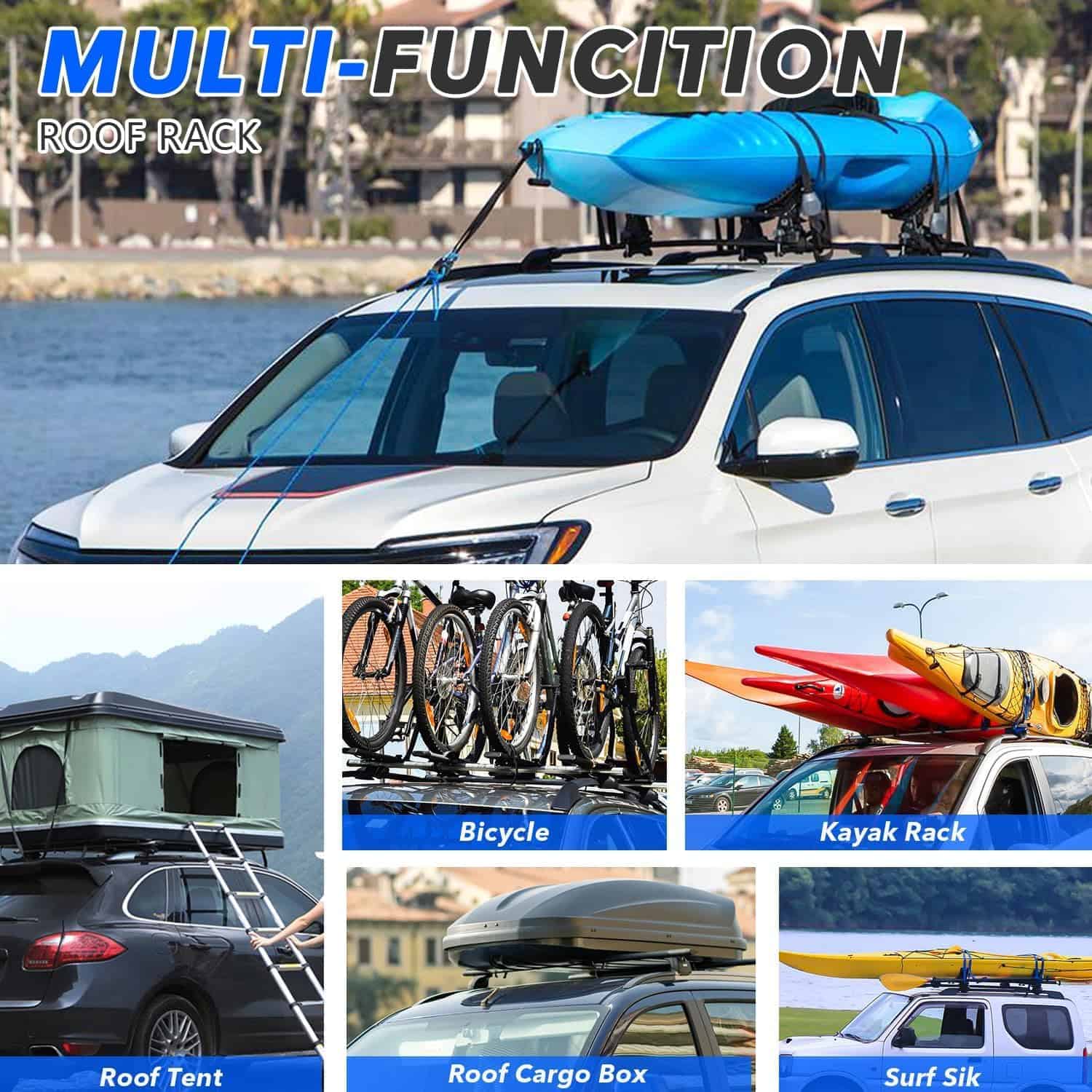 3. FUNCIÓN: Una solución maravillosa para transportar algo en el techo del automóvil, como kayaks y canoas, equipaje, tablas de snowboard, bicicletas, cajas de carga, cañas de pescar, etc.
