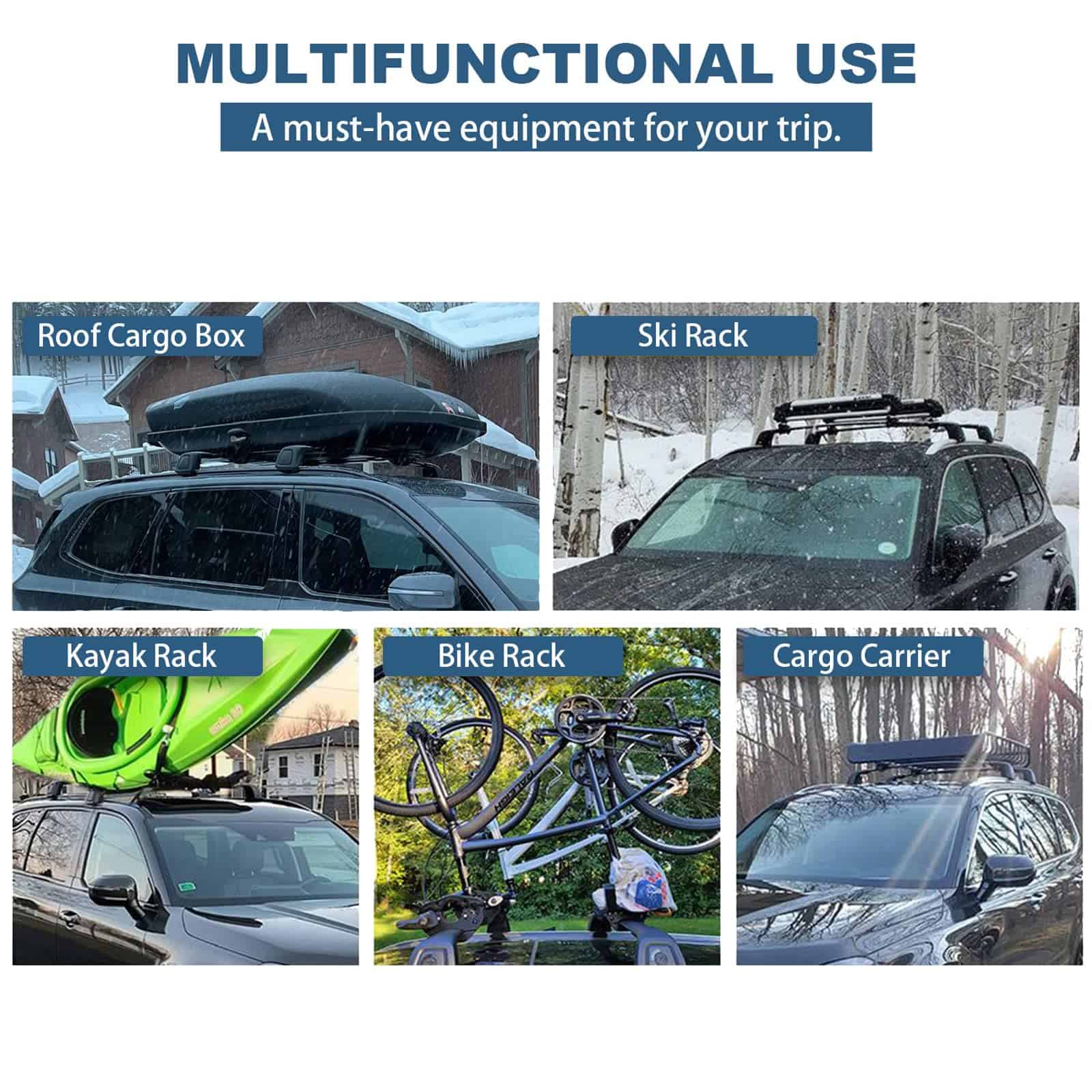 Aumenta considerablemente el espacio de almacenamiento total del vehículo y le ayuda a transportar carga adicional, equipo de camping, bicicletas, kayaks.