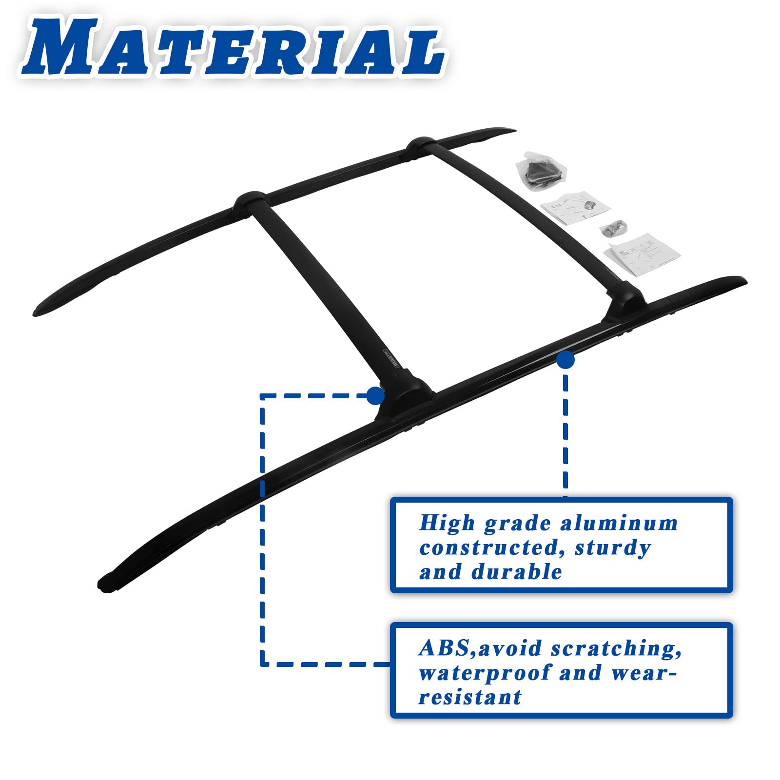1. Compatible con Honda CRV 2017-2021 2. No se requiere perforación, se instala en los agujeros preperforados de fábrica 3. Incluye 4 piezas, rieles y barras 4. Capacidad de carga de 165 libras cuando la carga está distribuida de manera uniforme 5. Se incluyen todos los herrajes de montaje necesarios
