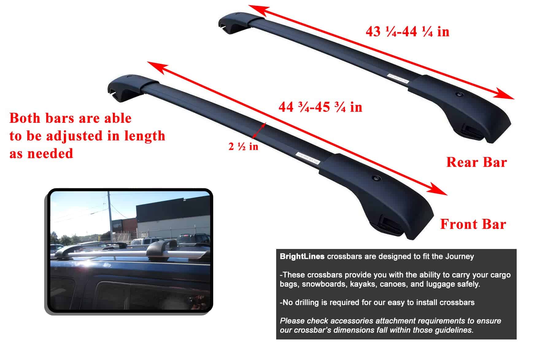 Barras transversales personalizadas para Dodge Journey. Equipo imprescindible para transportar accesorios de techo como bolsas de techo, portabicicletas, portaesquís, cajas de techo, etc.