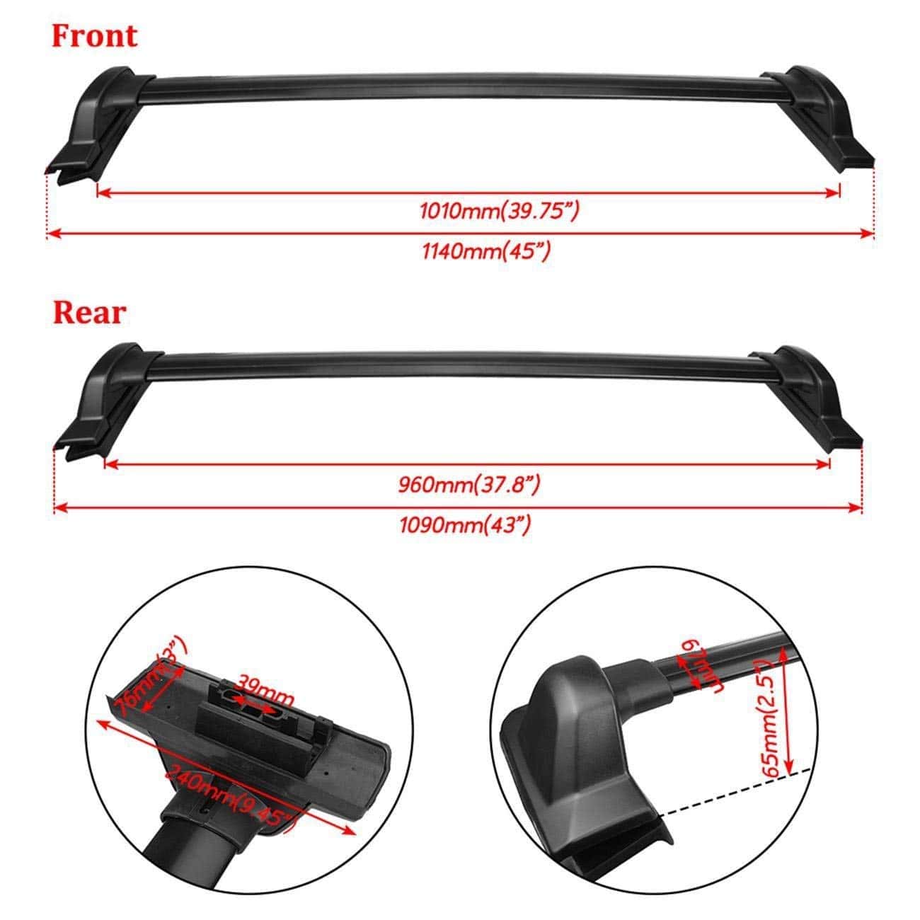 1. FITMENT La LONGITUD de la barra de techo es de 45 pulgadas en la parte delantera / 43 pulgadas en la trasera. Compatible con Honda CRV 2007 2008 2009 2010 2011.
